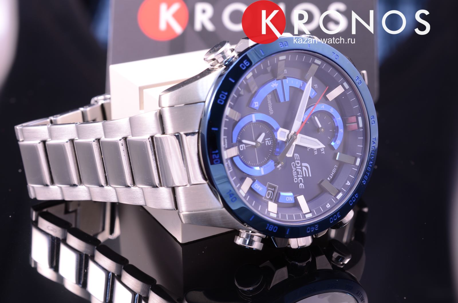 Перед вами модель из серии EQB-900 в стальном корпусе с синим безелем и циферблатом! В отличие от своим знаменитых собратьев по серии - EQB-500 у данной модели помимо необрайтового напыления появилась светодиодная подсветка, часы стали компактнее в диаметре, тоньше и легче на 25%! Модель автоматически соединяется с сервером точного времени в интернете через Bluetooth с помощью вашего смартфона 4 раза в день, что гарантирует абсолютную точность времени на вашем запястье.