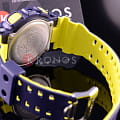 Ударопрочные японские наручные мужские часы в яркой сине-желтой расцветке. Круглый корпус и браслет часов выполнены из высокоустойчивого полимерного пластика.  Водонепроницаемость 20 ATM. Минеральное стекло, устойчивое к появлению царапин. В часах присутствуют такие дополнительные функции как защита от магнитных полей, секундомер, таймер обратного отсчета, автоподсветка, мировое время, вечный календарь и будильник (5 установок).