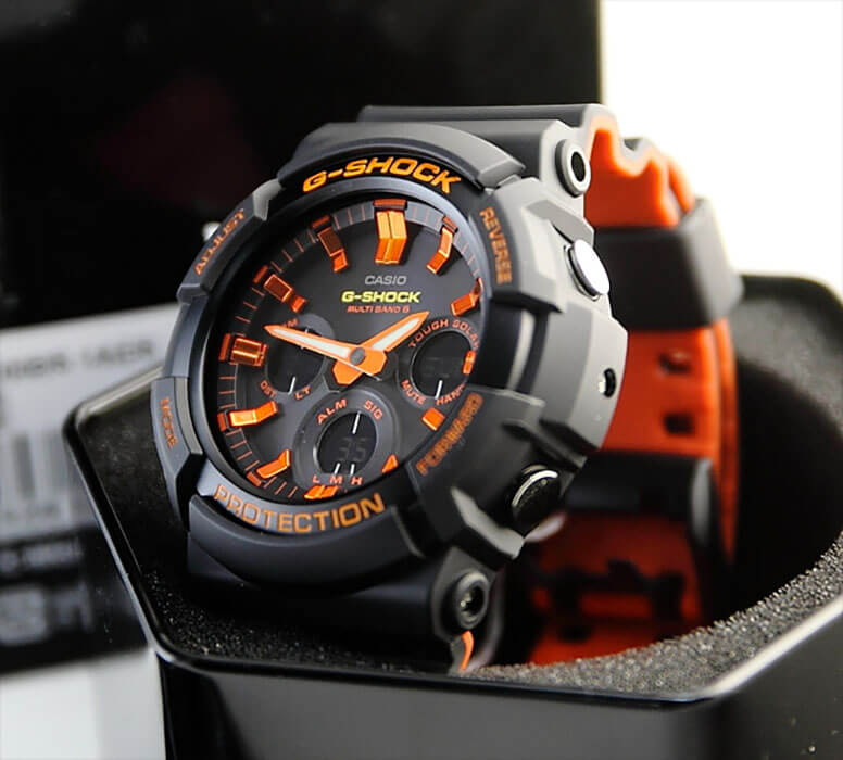 Японские мужские часы GAW-100BR-1AER из коллекции G-Shock, выполненные в спортивном стиле, идеально подойдут для активных людей, не привыкших сидеть на месте.
