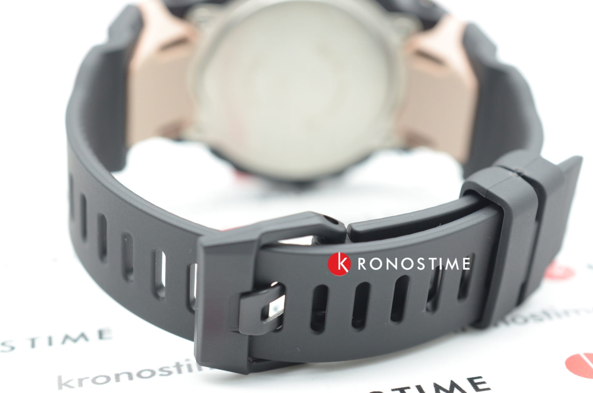 Компактный циферблат дополнен контрастными элементами в цвете розового золота, что обеспечивает отличную читаемость показателей. Модель по достоинству оценят любители спорта и фитнеса, ведь широкий функционал позволяет значительно повысить продуктивность тренировки. Часы оснащены трекером активности (шагомером), мультифункциональным таймером, секундомером, а с помощью технологии BluetoothBluetoothСовременная технология, позволяющая синхронизировать часы с телефоном и переносить данные. Часы с Bluetooth расширяют возможности вашего смартфона и делают его использование ещё более удобным. все данные могут передаваться и анализироваться в специальном приложении для смартфонов G-Shock Connected App. Японский кварцевый механизм с точностью хода +/- 15 секунд в сутки. Срок службы батарейки - 2 года. Функция перемещения стрелок для просмотра показателей с мини-дисплеев. Противоударный корпусУдаропрочный корпусМеханизм заключён в корпус, выполненный из современных материалов, устойчивых к ударам, механическим повреждениям и падению с высоты: инновационный пластик, карбон, нержавеющая сталь, титан. и браслет из надёжного пластика. Светодиодная подсветкаСветодиодная подсветкаСветодиодная или LED-подсветка обеспечивает появление яркого холодного свечения за счёт LED-элементов - маленьких лампочек. Они потребляют минимальное количество энергии, чаще всего можно встретить 1 светодиод, в нижней части циферблата.. Минеральное стекло. Водонепроницаемость 200 метров. ХронографХронографФункция позволяет измерять отрезки времени с особой точностью: часы, минуты, секунды. Верным признаком хронографа является наличие на циферблате 3 дополнительных окошек-счётчиков., автоматический календарь, мировое времяМировое время Полезное часовое усложнение, отображающее время в основных городах и известных областях по всему миру, оно связано с часовыми поясами, удобно для путешественников и бизнесменов. . Габариты: 50,7 x 45,2 x 15,5 мм.