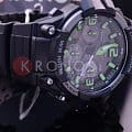 В часах имеется хронограф. Корпус и браслет черного цвета выполнены из высококачественных полимерных материалов. На дисплее отображается текущая дата. Изделие надежно защищено выпуклым акриловым стеклом. Высокая точность информации - прошедшее время отображается с точностью до доли секунды. Информация на дисплее четко видна даже в темное время суток благодаря неоновому покрытию. Высокая водонепроницаемость, которая составляет 10 Бар.