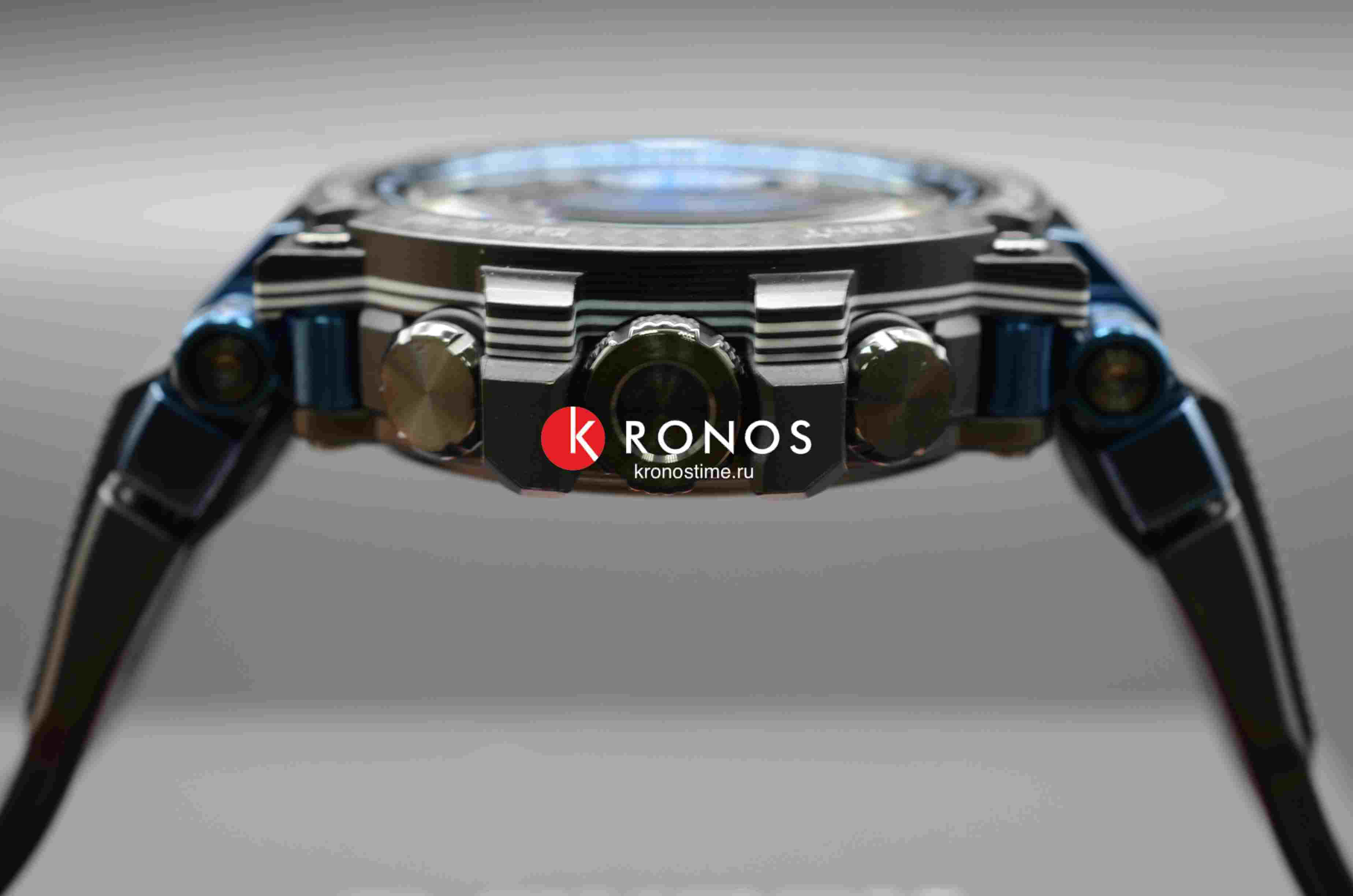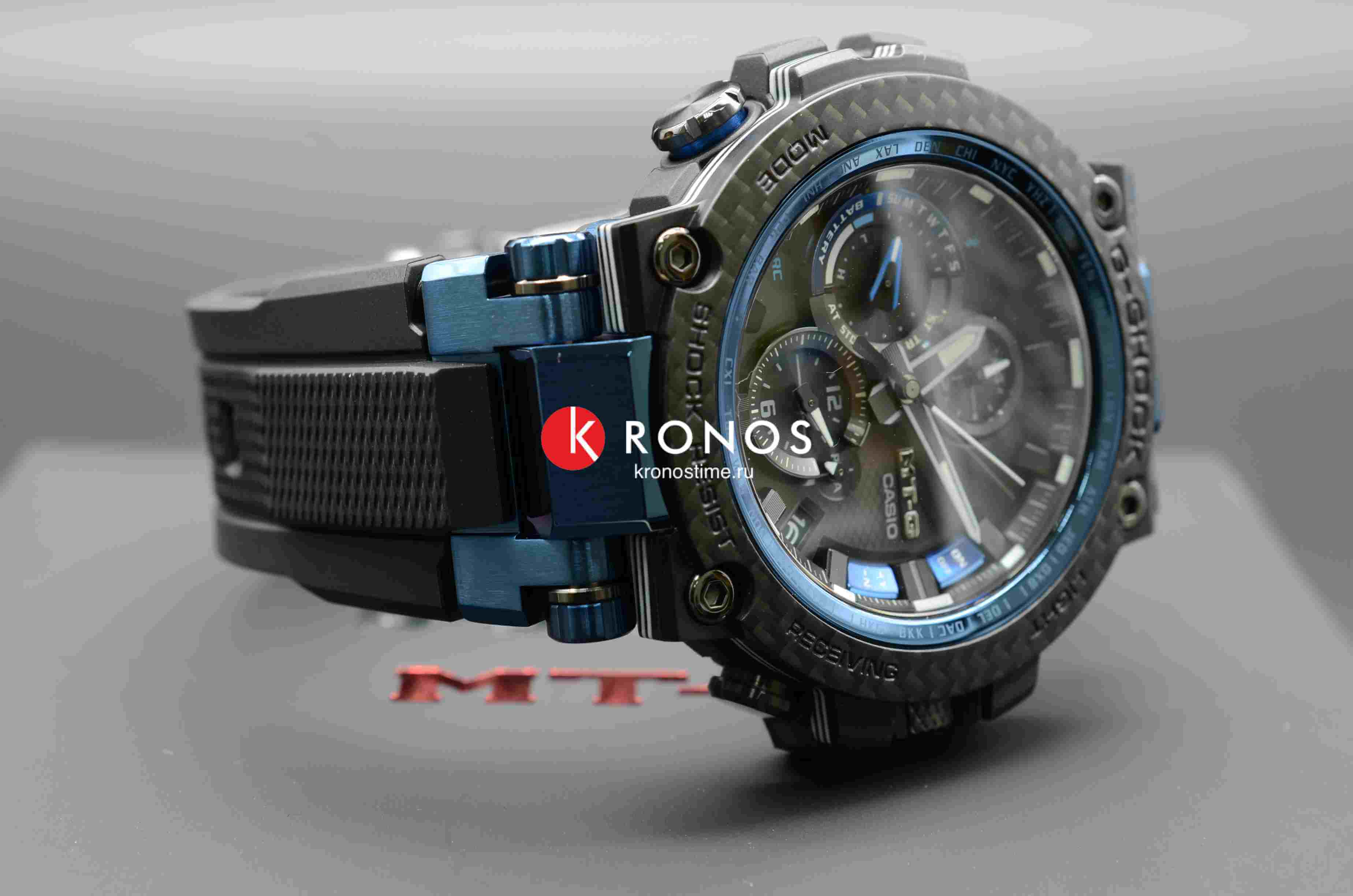 Чёрный циферблат с синими акцентами отличается необычной ромбовидной текстурой, внушительный карбоновый безель имеет шахматный узор. Casio обновили ударопрочный корпусУдаропрочный корпусМеханизм заключён в корпус, выполненный из современных материалов, устойчивых к ударам, механическим повреждениям и падению с высоты: инновационный пластик, карбон, нержавеющая сталь, титан., по сравнению с предыдущими моделями MTG он получился компактнее и тоньше (14,4 мм). Корпус выполнен из нержавеющей стали и пластика, усиленного карбоном - Carbon Core GuardCarbon Core Guard Новейшая структура корпуса, разработанная Casio. Полиуретановая пластина дополнительно усилена карбоновыми вставками, что придаёт специальную защиту от механических повреждений. Карбон отличается лёгкостью и прочностью.. Дополнительно внедрили вставки из материала alphaGEL, силиконовая прослойка обеспечивает возникновение амортизирующего эффекта. Чёрное IP-покрытиеIP-покрытиеМетод ионного напыления. Демонстрирует повышенную устойчивость к истиранию, окислению и химическим веществам. Под воздействием высокого давления и температуры около 1500°C молекулы металла надёжно соединяются с частицами корпуса часов.. Технология . Подсветка экрана. Стекло из сапфира. Функции: Bluetooth SmartBluetoothСовременная технология, позволяющая синхронизировать часы с телефоном и переносить данные. Часы с Bluetooth расширяют возможности вашего смартфона и делают его использование ещё более удобным., поиск телефона, будильник, приём радиосигнала, хронографХронографФункция позволяет измерять отрезки времени с особой точностью: часы, минуты, секунды. Верным признаком хронографа является наличие на циферблате 3 дополнительных окошек-счётчиков., календарь, мировое времяМировое время Полезное часовое усложнение, отображающее время в основных городах и известных областях по всему миру, оно связано с часовыми поясами, удобно для путешественников и бизнесменов. . Браслет из полимерного материала. Габариты: 51,7 x 55,8 x 14,4 мм.