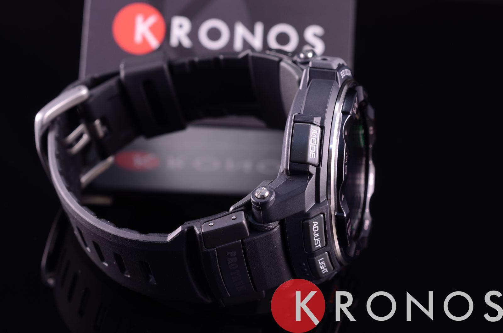 Часы, созданные для любителей активного отдыха, сочетают в себе самые продвинутые технические характеристики в привлекательном внешнем виде. Питание от солнечной энергии Tough Solar - солнечные батарейки большой мощности, индикатор заряда батареи. Функция автоматического сохранения энергии. Модуль часов рассчитан на работу при низких температурах до -10°С/14°F. Технология Triple Sensor позволяет точно и легко определять сторону света, температуру и атмосферное давление. Термометр от -10° до +60°С с точностью 0,1°C. Барометр - измерение атмосферного давления от 260 до 1100 гПа (от 195 до 825 мм рт. ст.). Встроенный цифровой компас. Диапазон измерения от 0° до 359° с точностью 1°. Высотомер - встроенный датчик барометрического давления с возможностью вывода результатов в единицах высоты над уровнем моря (от -700 до 10000 метров). Секундомер, таймер. Функция перемещения стрелок. Функция отключения/включения звука. Будильник (5 установок). Минеральное стекло устойчиво к появлению царапин. Водонепроницаемость (10 Бар).
