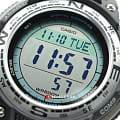 все что писали раньше... + в любом режиме (секундомер, таймер, компас/термометр,...) на дисплее показывается текущее время - очень удобно! + крупные "часовые" цифры