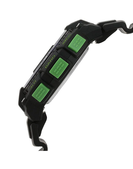 Корпус и браслет многофункциональных и стильных часов от Casio выполнены из высокопрочных полимерных материалов. Есть функции для определения погоды. Часы способны выдержать температуру даже ниже, чем -10 °C. Предел измерения секундомера достигает 1000 часов. Быть максимально пунктуальными помогут 5 независимых будильников. Встроен цифровой компас. Светодиодная подсветкаСветодиодная подсветкаСветодиодная или LED-подсветка обеспечивает появление яркого холодного свечения за счёт LED-элементов - маленьких лампочек. Они потребляют минимальное количество энергии, чаще всего можно встретить 1 светодиод, в нижней части циферблата. обеспечивает видимость информации в темноте. Высокая водонепроницаемость в 100 WR.