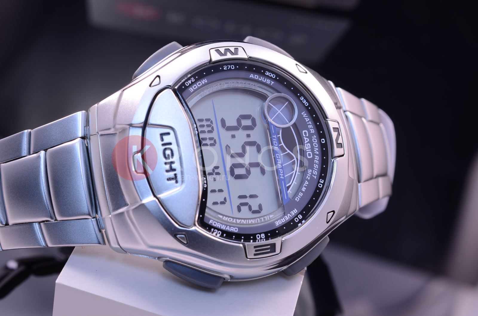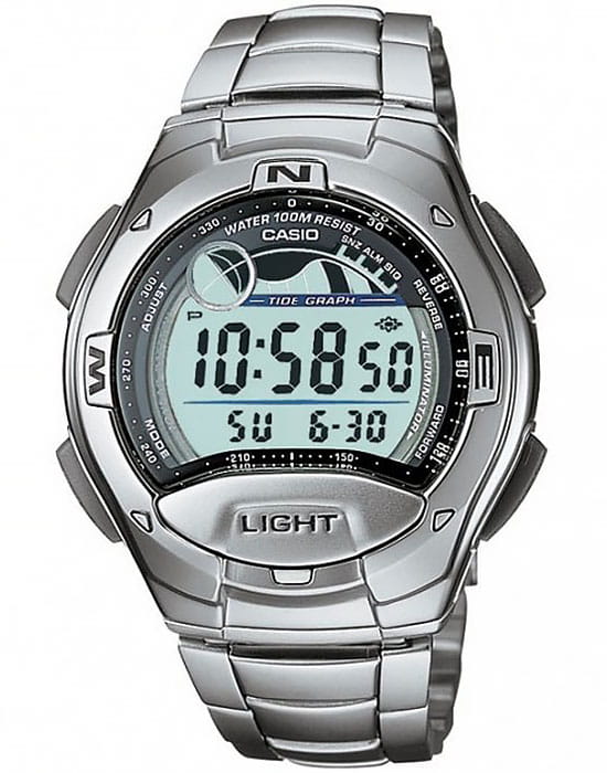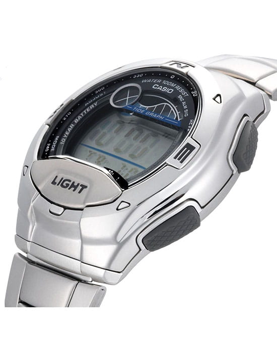Данная модель от Casio идеально подойдет для любителей активного отдыха. На прочном корпусе имеются аккуратные отметки сторон света. На экране отображаются фазы луны. Есть датчик приливов и отливов. Вставлен вращающийся безельБезельВнешний ободок, закрепляющий стекло. В спортивных часах так называется поворотное кольцо с делениями на циферблате, выполняет роль таймера – замеряет отрезки времени на шкале. Неподвижный безель – элемент декора. Однонаправленно вращающийся безель на дайверских часах позволяет фиксировать моменты погружения и выныривания на поверхность.. Долговечная батарейка служит 10 лет.