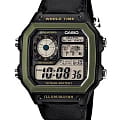 Спортивные японские мужские часы Casio Collection AE-1200WHB-1B, кварцевый механизм с высокой точностью. Класс водозащиты: 100 метров, позволит плавать, нырять и заниматься другими водными видами спорта. Корпус часов изготовлен из пластика, цвета.