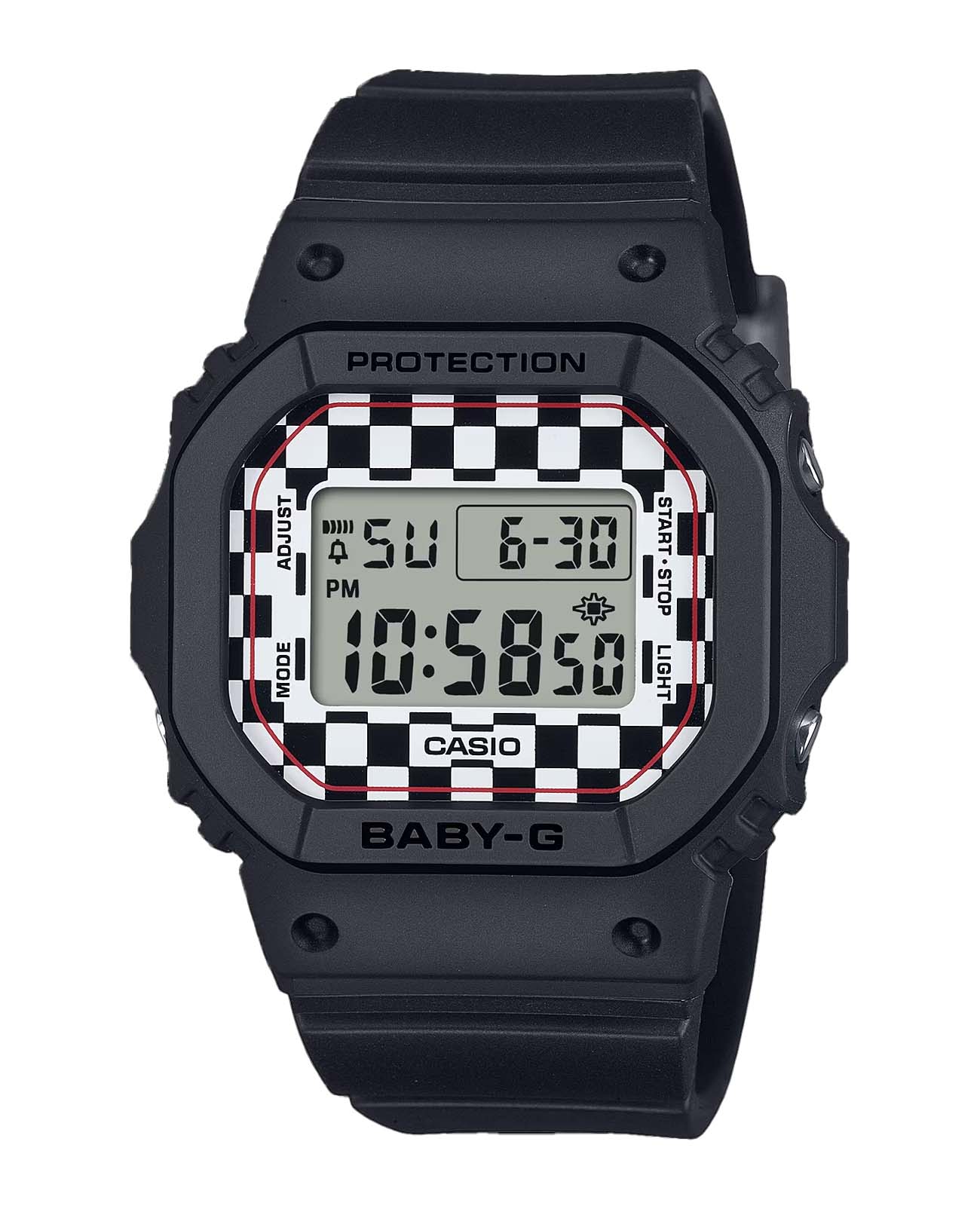 Женские противоударныеУдаропрочный корпусМеханизм заключён в корпус, выполненный из современных материалов, устойчивых к ударам, механическим повреждениям и падению с высоты: инновационный пластик, карбон, нержавеющая сталь, титан. японские часы-хронографХронографФункция позволяет измерять отрезки времени с особой точностью: часы, минуты, секунды. Верным признаком хронографа является наличие на циферблате 3 дополнительных окошек-счётчиков. Casio Baby-G BGD-565GS-1DR, кварцевый механизм с высокой точностью. Идеальные часики от Casio для модных девушек, которые привыкли всегда быть в тренде. С широким функционалом, в который входит: таймерТаймерОтсчитывает секунды в обратном направлении в заданном интервале времени., будильникБудильникБуди́льник — часы, в заданный момент времени подающие звуковой, световой и/или в редких случаях другой сигнал. с ежечасным сигналом, 12 и 24-часовой формат времени, вечный календарьВечный календарьКлассическое часовое усложнение, представляющее собой календарь, рассчитанный на несколько лет вперёд (стандартно – до 2099 года). Определяет текущую дату, день недели, месяц.. Ударопрочный корпусУдаропрочный корпусМеханизм заключён в корпус, выполненный из современных материалов, устойчивых к ударам, механическим повреждениям и падению с высоты: инновационный пластик, карбон, нержавеющая сталь, титан. защищает механизм от ударов и вибрации. Светодиодная подсветкаСветодиодная подсветкаСветодиодная или LED-подсветка обеспечивает появление яркого холодного свечения за счёт LED-элементов - маленьких лампочек. Они потребляют минимальное количество энергии, чаще всего можно встретить 1 светодиод, в нижней части циферблата. освещает весь циферблат, после отпускания кнопки свечение продолжается еще некоторое время. Батарея рассчитана на 3 года. Стальная задняя крышка крепится на 4-х винтах. Класс водозащиты: 100 метров, позволит плавать, нырять и заниматься другими водными видами спорта. Ремешок из полимерного материала на стандартной застежке.