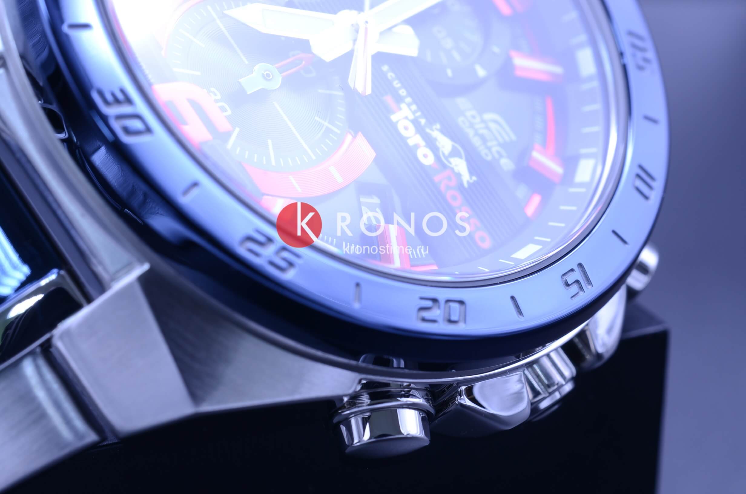 Японские мужские часы Limited Edition из автомобильной коллекции Edifice отличаются динамичным экстерьером, выпуск посвящён знаменитой команде Формулы-1 Scuderia Toro Rosso.