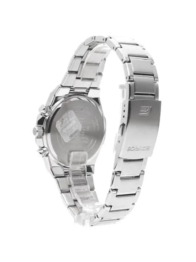 Модель Casio Edifice EFS-S570D-3A сочетает элегантный дизайн с передовыми технологиями. Корпус из нержавеющей стали диаметром 44 мм и толщиной всего 9,7 мм обеспечивает комфортное ношение, а восьмиугольный безельБезельВнешний ободок, закрепляющий стекло. В спортивных часах так называется поворотное кольцо с делениями на циферблате, выполняет роль таймера – замеряет отрезки времени на шкале. Неподвижный безель – элемент декора. Однонаправленно вращающийся безель на дайверских часах позволяет фиксировать моменты погружения и выныривания на поверхность. с матовой отделкой придаёт спортивный и стильный вид. Часы оснащены солнечной батареейTough SolarТехнология основана на подзарядке аккумулятора от источника солнечного света, специальная панель улавливает солнечные лучи и преобразует их в энергию для работы часов. Достаточно пары минут нахождения на солнце для функционирования часов в течении суток., обеспечивающей стабильную работу без необходимости замены элемента питания. Сапфировое стеклоСапфировое стеклоПрочный и надёжный материал из кристалла сапфира синтетического происхождения, характеризующийся особой твёрдостью и устойчивостью к царапинам и повреждениям. с антибликовым покрытием защищает циферблат от царапин и улучшает читаемость. Функциональность модели включает хронографХронографФункция позволяет измерять отрезки времени с особой точностью: часы, минуты, секунды. Верным признаком хронографа является наличие на циферблате 3 дополнительных окошек-счётчиков. с точностью до 1 секунды и максимальным временем измерения 59 минут 59 секунд, а также индикацию датыВечный календарьКлассическое часовое усложнение, представляющее собой календарь, рассчитанный на несколько лет вперёд (стандартно – до 2099 года). Определяет текущую дату, день недели, месяц.. Водонепроницаемость до 100 метров делает эти часы подходящими для плавания и других водных активностей. Casio Edifice EFS-S570D-5A — это стильный и функциональный аксессуар для тех, кто ценит надежность и современные технологии.