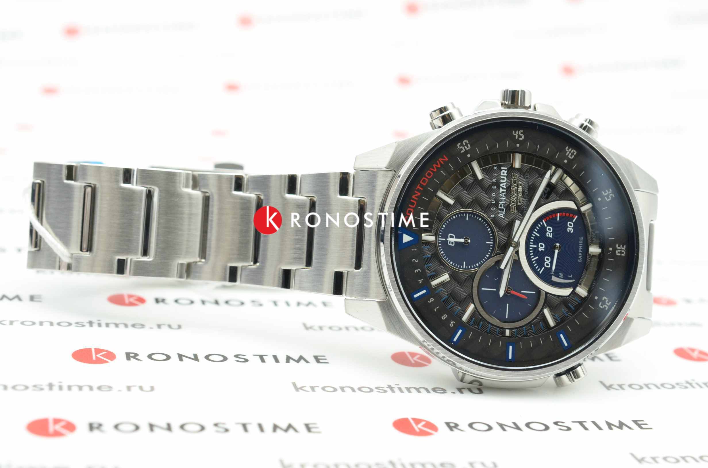 Коллаборация Edifice и итальянской гоночной команды Формулы-1 Scuderia AlphaTauri из серии EFS-S590 в стальном корпусе на стальном браслете. Лимитированная серия. Casio Edifice EFS-S590AT-1A из коллекции Edifice раскрывают автомобильную тематику.