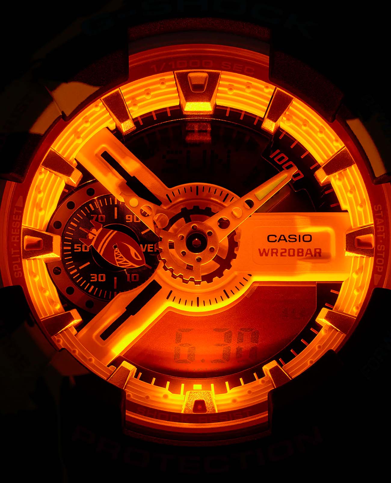 Японские мужские часы-хронографХронографФункция позволяет измерять отрезки времени с особой точностью: часы, минуты, секунды. Верным признаком хронографа является наличие на циферблате 3 дополнительных окошек-счётчиков. Casio G-Shock GA-110LL-1A. Яркая коллаборация бренда G-SHOCK и компьютерной онлайн-игры League of Legends (LoL) в популярном джишоковом корпусе GA-110 никого не оставит равнодушным своим бомбическим внешним видом. Индикатор заряда батареи. Функция автоматического сохранения энергии. Время работы аккумулятора без подзарядки - 7 месяцев, при включенной функции сохранения энергии - 18 месяцев. Минеральное стеклоМинеральное стеклоМинеральное стекло представляет собой искусственно выращенный минерал кварца. Такое стекло отличается особой устойчивостью к повреждениям и царапинам. Уступает по некоторым качествам сапфировому стеклу. устойчивое к появлению царапин, обладающее высокой прозрачностью. Ударопрочный корпусУдаропрочный корпусМеханизм заключён в корпус, выполненный из современных материалов, устойчивых к ударам, механическим повреждениям и падению с высоты: инновационный пластик, карбон, нержавеющая сталь, титан. защищает механизм от ударов и вибрации. Светодиодная подсветкаСветодиодная подсветкаСветодиодная или LED-подсветка обеспечивает появление яркого холодного свечения за счёт LED-элементов - маленьких лампочек. Они потребляют минимальное количество энергии, чаще всего можно встретить 1 светодиод, в нижней части циферблата. освещает весь циферблат, после отпускания кнопки свечение продолжается еще некоторое время. Настраиваемое послесвечение 1,5 или 3сек. Мировое время Мировое время Полезное часовое усложнение, отображающее время в основных городах и известных областях по всему миру, оно связано с часовыми поясами, удобно для путешественников и бизнесменов. 38 городов (38 часовых поясов), всемирное координированное время UTCUTCВсемирное кординационное время, не имеющее привязки к географическому положению Гринвича, основывается на атомном отсчёте времени. Регулировка времени осуществляется более точно, чем устаревшее GMT.