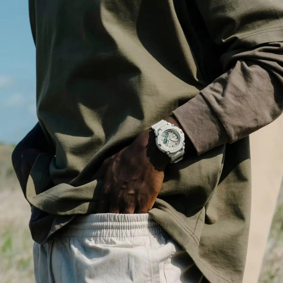 Мужские японские наручные часы Casio G-Shock GA-2200NC-7A, кварцевый механизм с высокой точностью. Класс водозащиты: 200 метров, позволит плавать, нырять и заниматься другими водными видами спорта. Структура Carbon Core GuardCarbon Core Guard Новейшая структура корпуса, разработанная Casio. Полиуретановая пластина дополнительно усилена карбоновыми вставками, что придаёт специальную защиту от механических повреждений. Карбон отличается лёгкостью и прочностью.. Крупный пластиковый ударопрочный корпусУдаропрочный корпусМеханизм заключён в корпус, выполненный из современных материалов, устойчивых к ударам, механическим повреждениям и падению с высоты: инновационный пластик, карбон, нержавеющая сталь, титан. с карбоновыми волокнами более прочный и, в то же время, более легкий. Этот же материал защищает внутренний модуль от повреждений и деформаций при ударах. Двойная светодиодная подсветкаСветодиодная подсветкаСветодиодная или LED-подсветка обеспечивает появление яркого холодного свечения за счёт LED-элементов - маленьких лампочек. Они потребляют минимальное количество энергии, чаще всего можно встретить 1 светодиод, в нижней части циферблата. позволяет видеть в полной темноте не только аналоговый циферблат, но и цифровой дисплей. Светонакопительная подсветка NeobriteПодсветка NeobriteИспользование светонакопительных составов на основе сульфида цинка или алюмината стронция, яркий свет можно наблюдать на протяжении 6-10 часов после «зарядки» часов около источника света. обеспечивает длительное послесвечение в темноте даже после кратковременного нахождения на свету. СекундомерСекундомерСекундоме́р — прибор, способный измерять интервалы времени с точностью до долей секунды. с двумя точностями показаний, таймерТаймерОтсчитывает секунды в обратном направлении в заданном интервале времени., мировое времяМировое время Полезное часовое усложнение, отображающее время в основных городах и известных областях по всему миру, оно связано с часовыми поясами, удобно для путешественников и бизнесменов. , включающее 31 часовой пояс и UTCUTCВсемирное кординационное время, не имеющее привязки к географическому положению Гринвича, основывается на атомном отсчёте времени. Регулировка времени осуществляется более точно, чем устаревшее GMT.