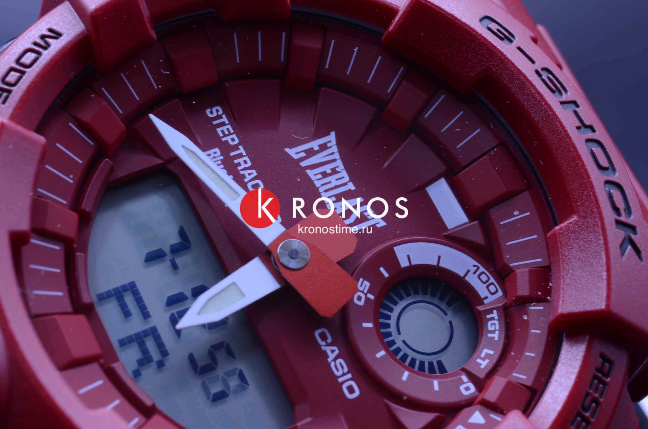 Внешний вид напоминает о боксерских перчатках. Ярко-красный аксессуар подходит для людей, которые следят за здоровьем и регулярно посещают тренировки. Этому способствует шагомер со звуковым напоминанием об отсутствии активности и технология BluetoothBluetoothСовременная технология, позволяющая синхронизировать часы с телефоном и переносить данные. Часы с Bluetooth расширяют возможности вашего смартфона и делают его использование ещё более удобным. с низким потреблением энергии. Часы синхронизируются с приложением G-SHOCK Connected Phone, в котором можно установить ежедневную норму шагов, рассчитать сожжённые калории. Японский кварцевый механизм получает питание от аккумулятора, рассчитанного на 2 года службы. Противоударный корпусУдаропрочный корпусМеханизм заключён в корпус, выполненный из современных материалов, устойчивых к ударам, механическим повреждениям и падению с высоты: инновационный пластик, карбон, нержавеющая сталь, титан. из пластика. Функция перемещения стрелок для лёгкого доступа к данным на цифровых дисплеях. Включение и выключение звука кнопок. Полимерный ремешок. Минеральное стекло. Водонепроницаемость 200 метров. Автоматическая светодиодная подсветкаСветодиодная подсветкаСветодиодная или LED-подсветка обеспечивает появление яркого холодного свечения за счёт LED-элементов - маленьких лампочек. Они потребляют минимальное количество энергии, чаще всего можно встретить 1 светодиод, в нижней части циферблата., стрелки с люминесцентным покрытием NeobriteПодсветка NeobriteИспользование светонакопительных составов на основе сульфида цинка или алюмината стронция, яркий свет можно наблюдать на протяжении 6-10 часов после «зарядки» часов около источника света.. Возможности: секундомер с памятью на 200 кругов, мировое времяМировое время Полезное часовое усложнение, отображающее время в основных городах и известных областях по всему миру, оно связано с часовыми поясами, удобно для путешественников и бизнесменов. , таймер обратного отсчёта, 5 будильников, календарь до 2099 года, хронографХронографФункция позволяет измерять отрезки времени с особой точностью: часы, минуты, секунды. Верным признаком хронографа является наличие на циферблате 3 дополнительных окошек-счётчиков.. Габариты: 54,1 x 48,6 x 15,5 мм.