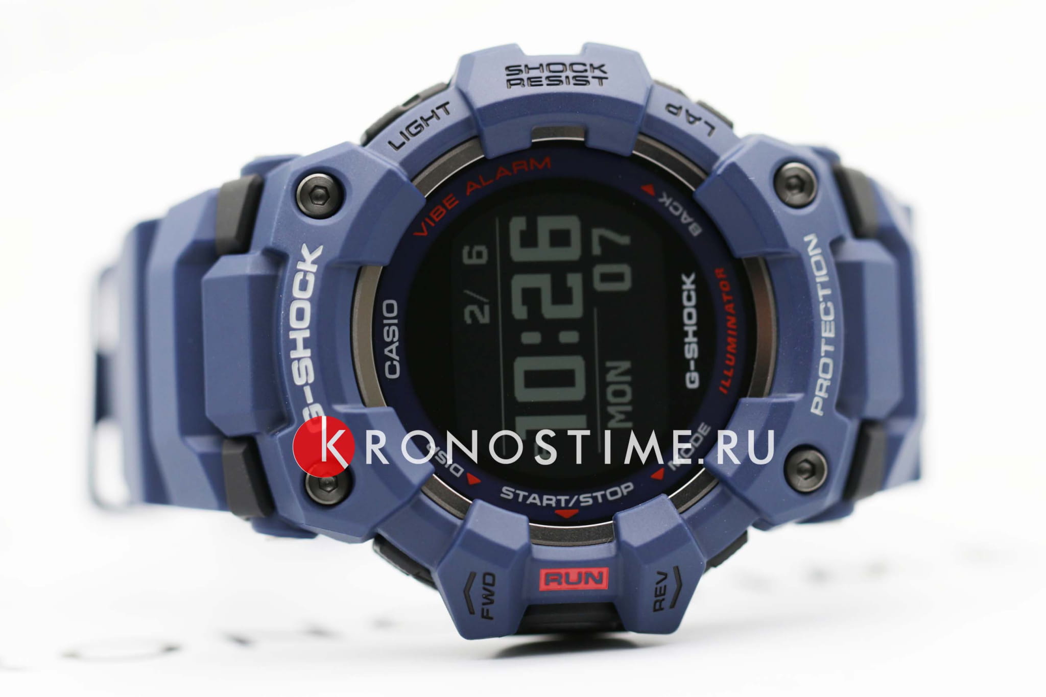 Японские мужские ударопрочные часы c функцией Bluetooth и шагомером Casio G-Shock GBD-100-2, кварцевый механизм с высокой точностью. Класс водозащиты: 200 метров, позволит плавать, нырять и заниматься другими водными видами спорта. Корпус часов изготовлен из пластика синего цвета. Ударопрочный корпусУдаропрочный корпусМеханизм заключён в корпус, выполненный из современных материалов, устойчивых к ударам, механическим повреждениям и падению с высоты: инновационный пластик, карбон, нержавеющая сталь, титан. защищает механизм от ударов и вибрации. Cветодиодная подсветкаСветодиодная подсветкаСветодиодная или LED-подсветка обеспечивает появление яркого холодного свечения за счёт LED-элементов - маленьких лампочек. Они потребляют минимальное количество энергии, чаще всего можно встретить 1 светодиод, в нижней части циферблата. с выбираемой длительностью свечения 1,5 или 3 секунды. Часы обладают шагомером и функцией BluetoothBluetoothСовременная технология, позволяющая синхронизировать часы с телефоном и переносить данные. Часы с Bluetooth расширяют возможности вашего смартфона и делают его использование ещё более удобным.. Bluetooth позволяет удобно отображать все метрики с часов на экране смартфона, а также выводить на часы уведомления о входящих звонках, сообщениях и имейлах. Базовые функции: сплит-хронографСплит-хронографИспользуется для измерения продолжительности нескольких временных отрезков, начинающихся одновременно, а заканчивающихся в разное время., секундомерСекундомерСекундоме́р — прибор, способный измерять интервалы времени с точностью до долей секунды., таймер и мировое времяМировое время Полезное часовое усложнение, отображающее время в основных городах и известных областях по всему миру, оно связано с часовыми поясами, удобно для путешественников и бизнесменов. . Модель оснащена показателем всемирного координированного времени UTCUTCВсемирное кординационное время, не имеющее привязки к географическому положению Гринвича, основывается на атомном отсчёте времени. Регулировка времени осуществляется более точно, чем устаревшее GMT.