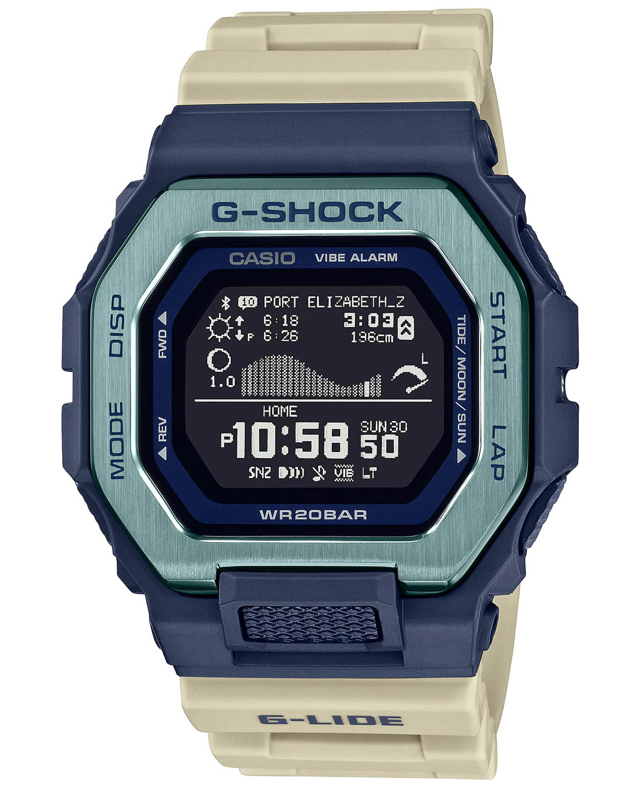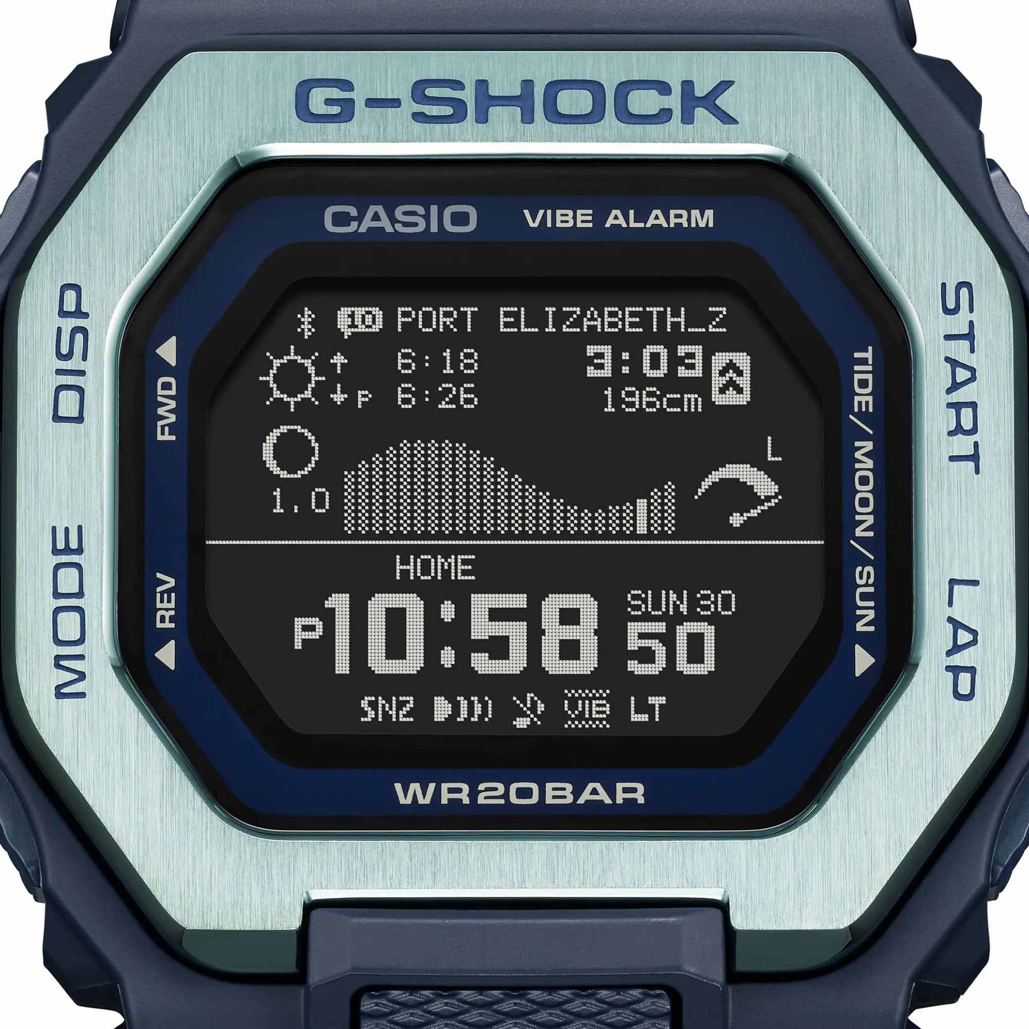 Японские мужские ударопрочные часы c функцией Bluetooth Casio G-Shock GBX100TT-2, кварцевый механизм с высокой точностью. Класс водозащиты: 200 метров, позволит плавать, нырять и заниматься другими водными видами спорта. Корпус представляет собой сочетание полимера и металла, причем безельБезельВнешний ободок, закрепляющий стекло. В спортивных часах так называется поворотное кольцо с делениями на циферблате, выполняет роль таймера – замеряет отрезки времени на шкале. Неподвижный безель – элемент декора. Однонаправленно вращающийся безель на дайверских часах позволяет фиксировать моменты погружения и выныривания на поверхность. выполнен из нержавеющей стали с блестящей шершавой обработкой для достижения прочности и текстуры. Ударопрочный корпусУдаропрочный корпусМеханизм заключён в корпус, выполненный из современных материалов, устойчивых к ударам, механическим повреждениям и падению с высоты: инновационный пластик, карбон, нержавеющая сталь, титан. защищает механизм от ударов и вибрации. Долговечный и экономичный матричный дисплей MIP LCD высокой четкости улучшает читаемость и восприятие любых данных. Отображаемые графики приливов и отливов, данные о Луне, время и уровень прилива/отлива, время восхода/заката солнца. Фирменная экономичная светодиодная подсветкаСветодиодная подсветкаСветодиодная или LED-подсветка обеспечивает появление яркого холодного свечения за счёт LED-элементов - маленьких лампочек. Они потребляют минимальное количество энергии, чаще всего можно встретить 1 светодиод, в нижней части циферблата. Super Illuminator с функцией Afterglow. Базовые функции: 12-ти и 24-х часовой формат времени, секундомерСекундомерСекундоме́р — прибор, способный измерять интервалы времени с точностью до долей секунды. с точностью показаний 1 сек и временем измерения 100 ч, сплит-хронографСплит-хронографИспользуется для измерения продолжительности нескольких временных отрезков, начинающихся одновременно, а заканчивающихся в разное время., возможность установить 5 таймеров, таймер обратного отсчета от 1 сек до 1 ч с автоповтором, мировое времяМировое время Полезное часовое усложнение, отображающее время в основных городах и известных областях по всему миру, оно связано с часовыми поясами, удобно для путешественников и бизнесменов. – 38 городов (38 часовых поясов), всемирное координированное время (UTCUTCВсемирное кординационное время, не имеющее привязки к географическому положению Гринвича, основывается на атомном отсчёте времени. Регулировка времени осуществляется более точно, чем устаревшее GMT.