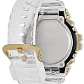 Наручные часы выполнены в облике моделей 80-х годов. 3 окошка Triple Graph разного размера расположились в верхней части циферблата, в нижней – цифровой дисплей. Противоударный корпусУдаропрочный корпусМеханизм заключён в корпус, выполненный из современных материалов, устойчивых к ударам, механическим повреждениям и падению с высоты: инновационный пластик, карбон, нержавеющая сталь, титан. сделан из сочетания пластика и карбоновых волокон, он защищён стальной накладкой, отполированной до зеркального блеска. Комфортный ремешок изготовлен из прозрачного полимера. Японский кварцевый механизм. Эксплуатационный срок батарейки – 2 года. Минеральное стекло. Электролюминесцентная подсветкаЭлектролюминесцентная подсветкаЭлектролюминесцентная панель устанавливается под ЖК-экраном часов, при нажатии кнопки электричество преобразуется в свет за счёт подачи напряжения на атомы фосфора, такой тип подсветки позволяет освещать весь циферблат. сине-зелёного оттенка. Водостойкость 200 метров. Световая индикация сигнала. Секундомер, многофункциональный будильник, таймер, хронографХронографФункция позволяет измерять отрезки времени с особой точностью: часы, минуты, секунды. Верным признаком хронографа является наличие на циферблате 3 дополнительных окошек-счётчиков., автокалендарь. Габариты: 49,7 x 53,9 x 18,6 мм.