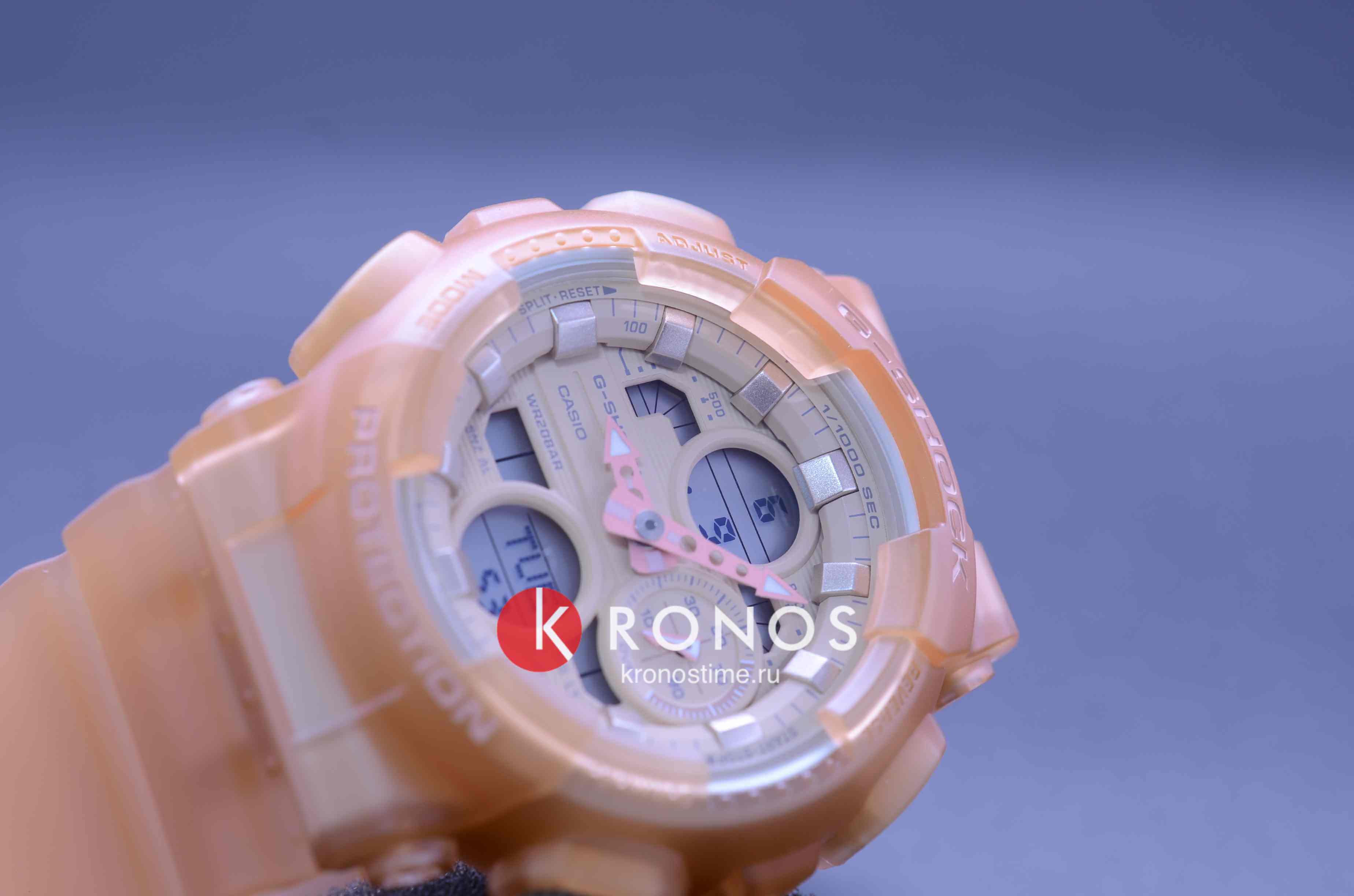 Компактный аксессуар имеет дизайн в скелетонизорованном формате. Полимерный корпус и ремешок светло-оранжевого оттенка изготовлены в полупрозрачном исполнении. Циферблат с минеральным стеклом наделён винтажными элементами: окошки и стрелки оформлены в духе музыкальных проигрывателей эпохи 90-х. Модель обладает противоударным корпусомУдаропрочный корпусМеханизм заключён в корпус, выполненный из современных материалов, устойчивых к ударам, механическим повреждениям и падению с высоты: инновационный пластик, карбон, нержавеющая сталь, титан., выдерживающим удары, вибрации, падение с высоты. Наручные часы станут идеальным вариантом для девушки, придерживающейся активного образа жизни. Японский кварцевый калибр характеризуется точностью хода +/- 15 секунд в месяц. Он работает от батарейки с 2-летним сроком службы. Часы подходят для плавания и ныряния, так как сохраняют водонепроницаемость при давлении до 20 бар. Циферблат подсвечивается LED-диодом Светодиодная подсветкаСветодиодная или LED-подсветка обеспечивает появление яркого холодного свечения за счёт LED-элементов - маленьких лампочек. Они потребляют минимальное количество энергии, чаще всего можно встретить 1 светодиод, в нижней части циферблата., функция автоподсветки активируется при поднесении часов к лицу. Функции: секундомер с точностью в 1/1000 секунды, хронографХронографФункция позволяет измерять отрезки времени с особой точностью: часы, минуты, секунды. Верным признаком хронографа является наличие на циферблате 3 дополнительных окошек-счётчиков., будильник, мировое времяМировое время Полезное часовое усложнение, отображающее время в основных городах и известных областях по всему миру, оно связано с часовыми поясами, удобно для путешественников и бизнесменов. – 48 городов, календарь, таймер, индикация средней скорости пройденного маршрута. Габариты: 49 x 45,9 x 15,8 мм.