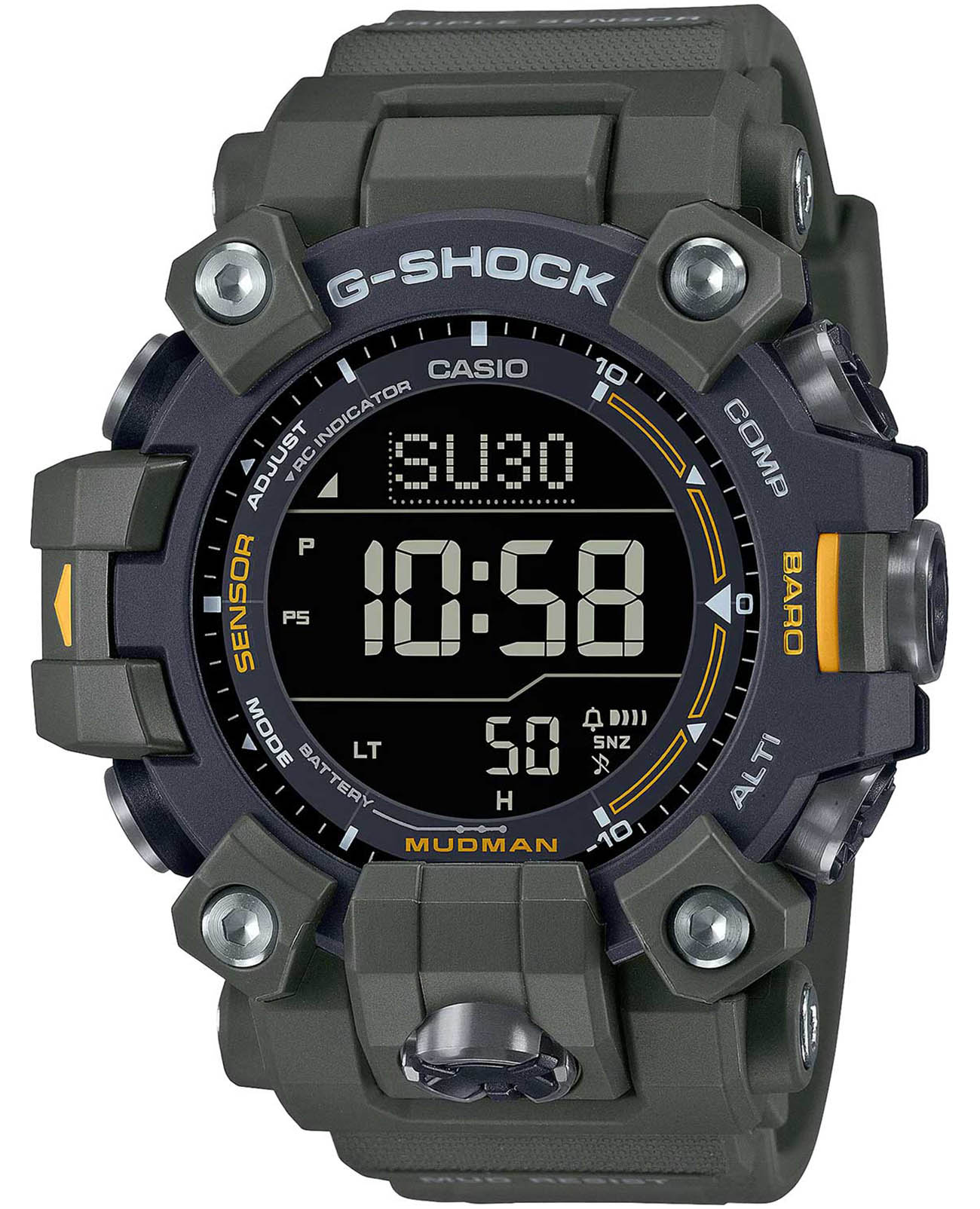 Линейка часов Master of G создана для настоящих мужчин, для которых экстрим и приключения это не просто слова. Мужские японские часы-хронографХронографФункция позволяет измерять отрезки времени с особой точностью: часы, минуты, секунды. Верным признаком хронографа является наличие на циферблате 3 дополнительных окошек-счётчиков. с секундомеромСекундомерСекундоме́р — прибор, способный измерять интервалы времени с точностью до долей секунды. Casio G-Shock GW-9500-3ER, кварцевый механизм с высокой точностью. Класс водозащиты: 200 метров, позволит плавать, нырять и заниматься другими водными видами спорта. Корпус часов изготовлен из пластика. Часы Master Of G Mudman спроектированы и разработаны специально для работы в суровых условиях. Корпус и ремешок выполнены из биопластика, который изготавливается из возобновляемых органических ресурсов. Питание от солнечной энергии Tough SolarTough SolarТехнология основана на подзарядке аккумулятора от источника солнечного света, специальная панель улавливает солнечные лучи и преобразует их в энергию для работы часов. Достаточно пары минут нахождения на солнце для функционирования часов в течении суток. - солнечные батарейки большой мощности, индикатор низкого заряда батареи. Функция автоматического сохранения энергии. Время работы аккумулятора без подзарядки до 6 месяцев, при включенной функции сохранения энергии до 26 месяцев. Структура Carbon Core GuardCarbon Core Guard Новейшая структура корпуса, разработанная Casio. Полиуретановая пластина дополнительно усилена карбоновыми вставками, что придаёт специальную защиту от механических повреждений. Карбон отличается лёгкостью и прочностью.. Ударопрочный корпусУдаропрочный корпусМеханизм заключён в корпус, выполненный из современных материалов, устойчивых к ударам, механическим повреждениям и падению с высоты: инновационный пластик, карбон, нержавеющая сталь, титан. с карбоновыми волокнами более прочный и, в то же время, более легкий. Этот же материал защищает внутренний модуль от повреждений и деформаций при ударах. Защита от попадания внутрь пыли и грязи. Модуль часов рассчитан на работу при низких температурах до -10°С/14°F. Циферблат подсвечивается светодиодом. Настраиваемое послесвечение 1,5 или 3сек. Цвет подсветки: белый. 12-ти и 24-х часовой формат времени. Секундомер с точностью показаний 1/10с и временем измерения 1000ч. Сплит-хронографСплит-хронографИспользуется для измерения продолжительности нескольких временных отрезков, начинающихся одновременно, а заканчивающихся в разное время.. ТаймерТаймерОтсчитывает секунды в обратном направлении в заданном интервале времени. обратного отсчета времени от 1мин до 24ч. Мировое времяМировое время Полезное часовое усложнение, отображающее время в основных городах и известных областях по всему миру, оно связано с часовыми поясами, удобно для путешественников и бизнесменов. – 48 городов (31 часовой пояс), всемирное координированное время (UTCUTCВсемирное кординационное время, не имеющее привязки к географическому положению Гринвича, основывается на атомном отсчёте времени. Регулировка времени осуществляется более точно, чем устаревшее GMT.