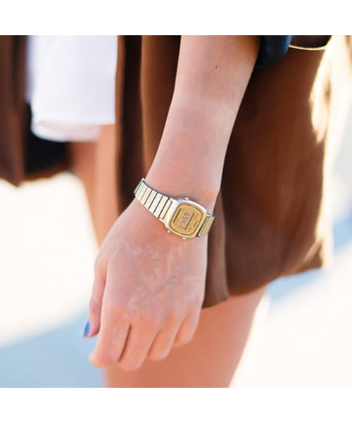 Женские часы на браслете в узнаваемом ретро-стиле Casio Collection LA670WGA-9. СекундомерСекундомерСекундоме́р — прибор, способный измерять интервалы времени с точностью до долей секунды. с точностью показаний 1/10с и временем измерения 1ч. с таймеромТаймерОтсчитывает секунды в обратном направлении в заданном интервале времени. обратного отсчета с 7-ю предустановленными интервалами измерений: 1, 3, 5, 10, 15, 20 и 30 мин. Водонепроницаемость 30 метров, позволит защитить корпус от случайных брызг или капель дождя. Браслет с IP-покрытиемIP-покрытиеМетод ионного напыления. Демонстрирует повышенную устойчивость к истиранию, окислению и химическим веществам. Под воздействием высокого давления и температуры около 1500°C молекулы металла надёжно соединяются с частицами корпуса часов. и с регулируемой застежкой.