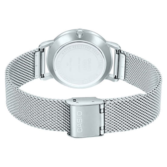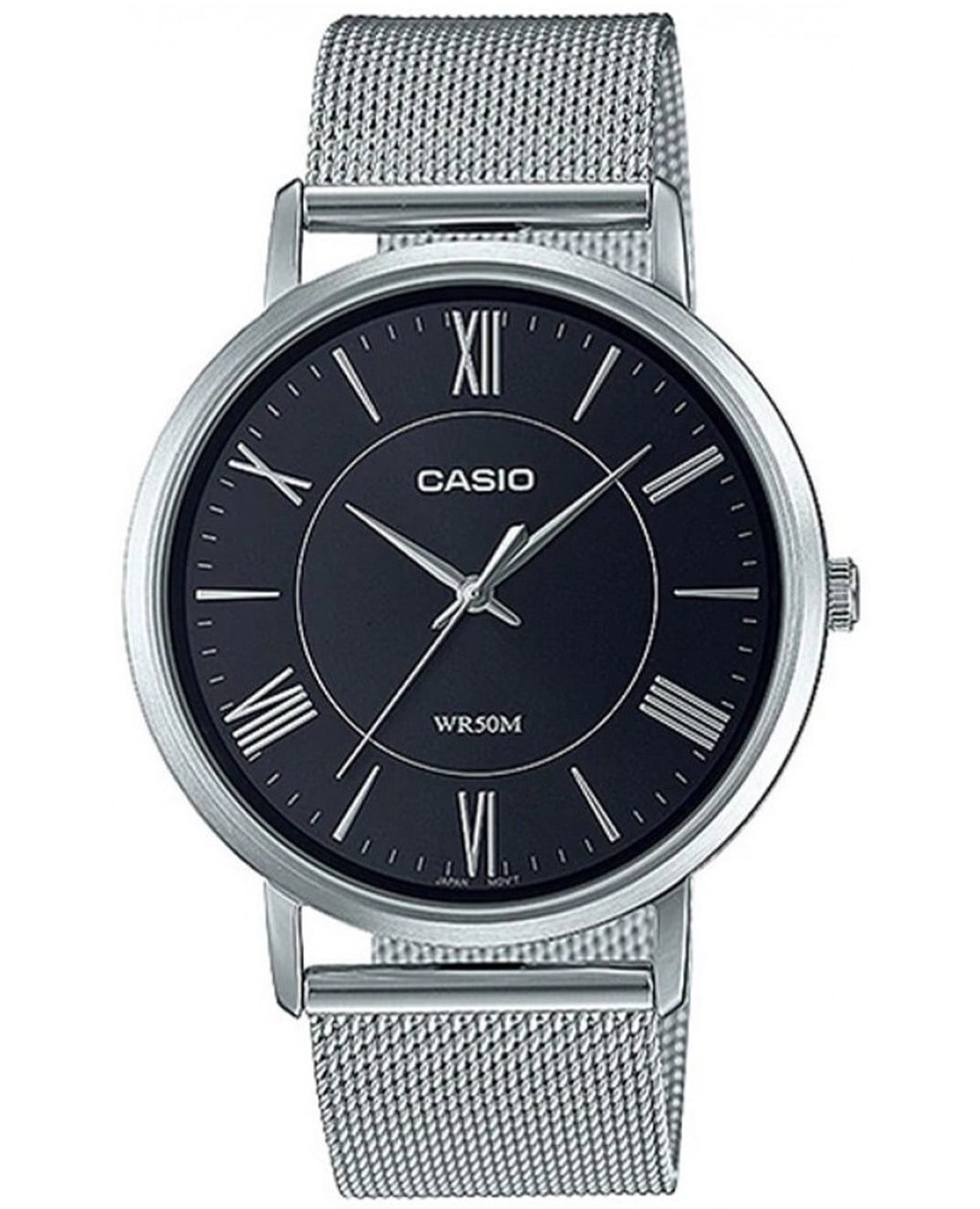 Японские мужские часы с минеральным стекломМинеральное стеклоМинеральное стекло представляет собой искусственно выращенный минерал кварца. Такое стекло отличается особой устойчивостью к повреждениям и царапинам. Уступает по некоторым качествам сапфировому стеклу. Casio Collection MTP-B110M-1A, кварцевый механизм с высокой точностью. Класс водозащиты: 50 метров, позволит защитить корпус от случайных брызг или капель дождя. Корпус и браслет часов изготовлены из стали. Браслет миланского плетения с раскладной застёжкойРаскладная застёжкаТакой тип застёжки используется только на браслетах из металла. Она никогда не раскрывается полностью, происходит разделение на 2 и более частей. Раскладывающая застёжка снизит вероятность потери часов к минимуму..