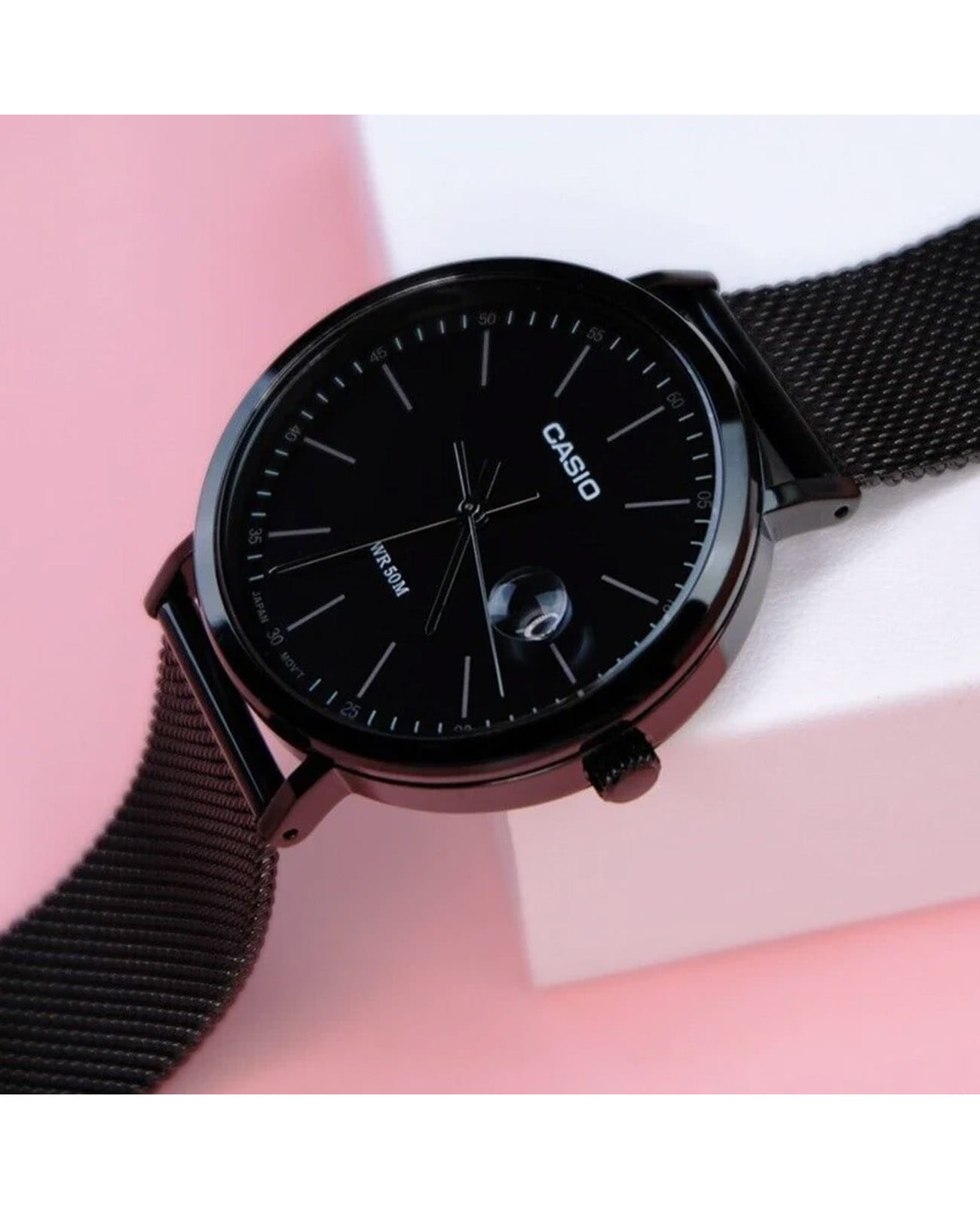 Японские мужские часы с минеральным стекломМинеральное стеклоМинеральное стекло представляет собой искусственно выращенный минерал кварца. Такое стекло отличается особой устойчивостью к повреждениям и царапинам. Уступает по некоторым качествам сапфировому стеклу. Casio Collection MTP-E175MB-1E, кварцевый механизм с высокой точностью. Корпус часов изготовлен из стали с IP-покрытиемIP-покрытиеМетод ионного напыления. Демонстрирует повышенную устойчивость к истиранию, окислению и химическим веществам. Под воздействием высокого давления и температуры около 1500°C молекулы металла надёжно соединяются с частицами корпуса часов.. Метки в виде штрихов. Окошко даты находится в положении 3 часа. Рифленая заводная головка. Класс водозащиты: 50 метров, позволит защитить корпус от случайных брызг или капель дождя. Стальной браслет миланского плетения с IP-покрытиемIP-покрытиеМетод ионного напыления. Демонстрирует повышенную устойчивость к истиранию, окислению и химическим веществам. Под воздействием высокого давления и температуры около 1500°C молекулы металла надёжно соединяются с частицами корпуса часов. на раскладном замкеРаскладной замокДанный вариант застежки используется только на часах с металлическим браслетом. Отличительная особенность такого крепления в том, что длина браслета становится универсальной и вы можете самостоятельно отрегулировать нужный вам размер – застежка просто двигается по браслету часов..