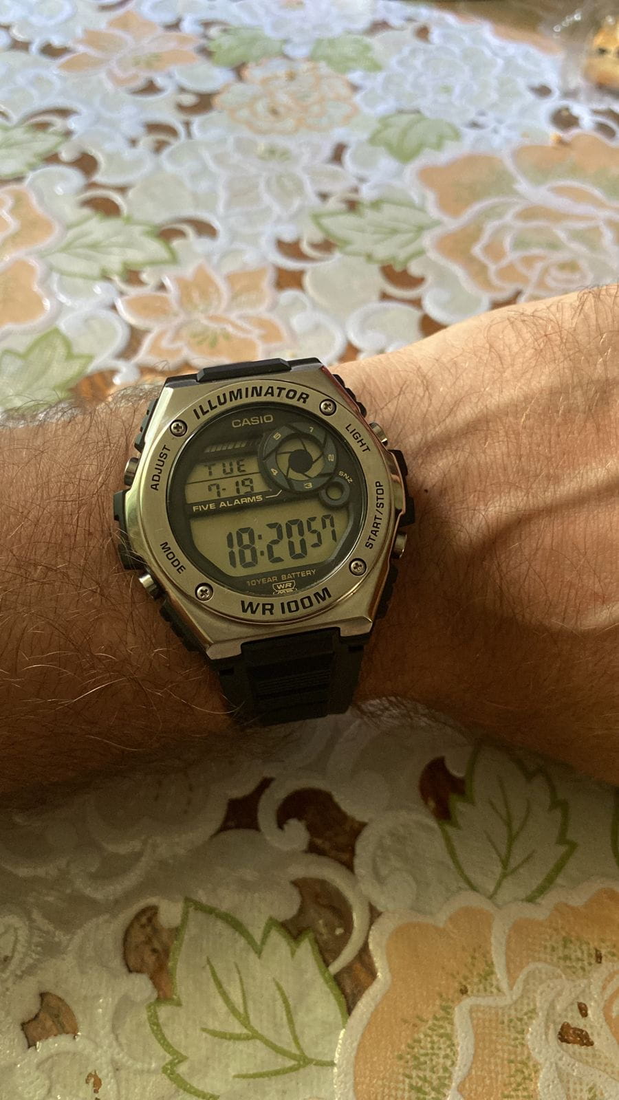 Спортивные японские мужские часы-хронографХронографФункция позволяет измерять отрезки времени с особой точностью: часы, минуты, секунды. Верным признаком хронографа является наличие на циферблате 3 дополнительных окошек-счётчиков. Casio Collection MWD-100H-9A, кварцевый механизм с высокой точностью, органическое стекло. Корпус часов изготовлен из стали и пластика. Светодиодная подсветкаСветодиодная подсветкаСветодиодная или LED-подсветка обеспечивает появление яркого холодного свечения за счёт LED-элементов - маленьких лампочек. Они потребляют минимальное количество энергии, чаще всего можно встретить 1 светодиод, в нижней части циферблата. освещает весь циферблат. Цвет подсветки: оранжевый. 12-ти и 24-х часовой формат времени. СекундомерСекундомерСекундоме́р — прибор, способный измерять интервалы времени с точностью до долей секунды. с точностью показаний 1/100с и временем измерения 1ч. Сплит-хронографСплит-хронографИспользуется для измерения продолжительности нескольких временных отрезков, начинающихся одновременно, а заканчивающихся в разное время.. Батарейка рассчитана на 10 лет. ТаймерТаймерОтсчитывает секунды в обратном направлении в заданном интервале времени. обратного отсчета от 1мин до 24ч. 5 будильниковБудильникБуди́льник — часы, в заданный момент времени подающие звуковой, световой и/или в редких случаях другой сигнал., один с функцией Snooze, ежечасный сигнал. Класс водозащиты: 100 метров, позволит плавать, нырять и заниматься другими водными видами спорта. Ремешок из полимерного материала на стандартной застежке.