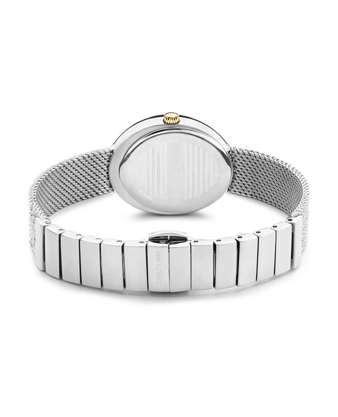 Французские женские часы с кристаллами Cerruti 1881 Nemi CIWLG0012503, кварцевый механизм с высокой точностью. Минеральное стеклоМинеральное стеклоМинеральное стекло представляет собой искусственно выращенный минерал кварца. Такое стекло отличается особой устойчивостью к повреждениям и царапинам. Уступает по некоторым качествам сапфировому стеклу. устойчивое к мелким механическим повреждениям. Корпус часов изготовлен из стали. БезельБезельВнешний ободок, закрепляющий стекло. В спортивных часах так называется поворотное кольцо с делениями на циферблате, выполняет роль таймера – замеряет отрезки времени на шкале. Неподвижный безель – элемент декора. Однонаправленно вращающийся безель на дайверских часах позволяет фиксировать моменты погружения и выныривания на поверхность. с IP-покрытиемIP-покрытиеМетод ионного напыления. Демонстрирует повышенную устойчивость к истиранию, окислению и химическим веществам. Под воздействием высокого давления и температуры около 1500°C молекулы металла надёжно соединяются с частицами корпуса часов. и циферблат украшены кристаллами. Класс водозащиты: 30 метров, позволит защитить корпус от случайных брызг или капель дождя. Стальной браслет миланского плетения на застёжке-бабочке с кнопкамиЗастёжка "бабочка"Такой вид застёжки дополняется предохранителями, помогающими избежать случайного раскрытия браслета. Обладают изящным исполнением. .