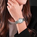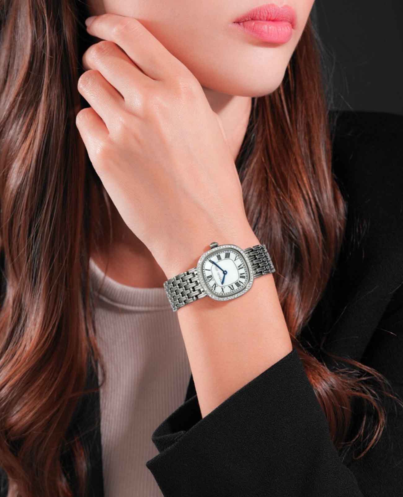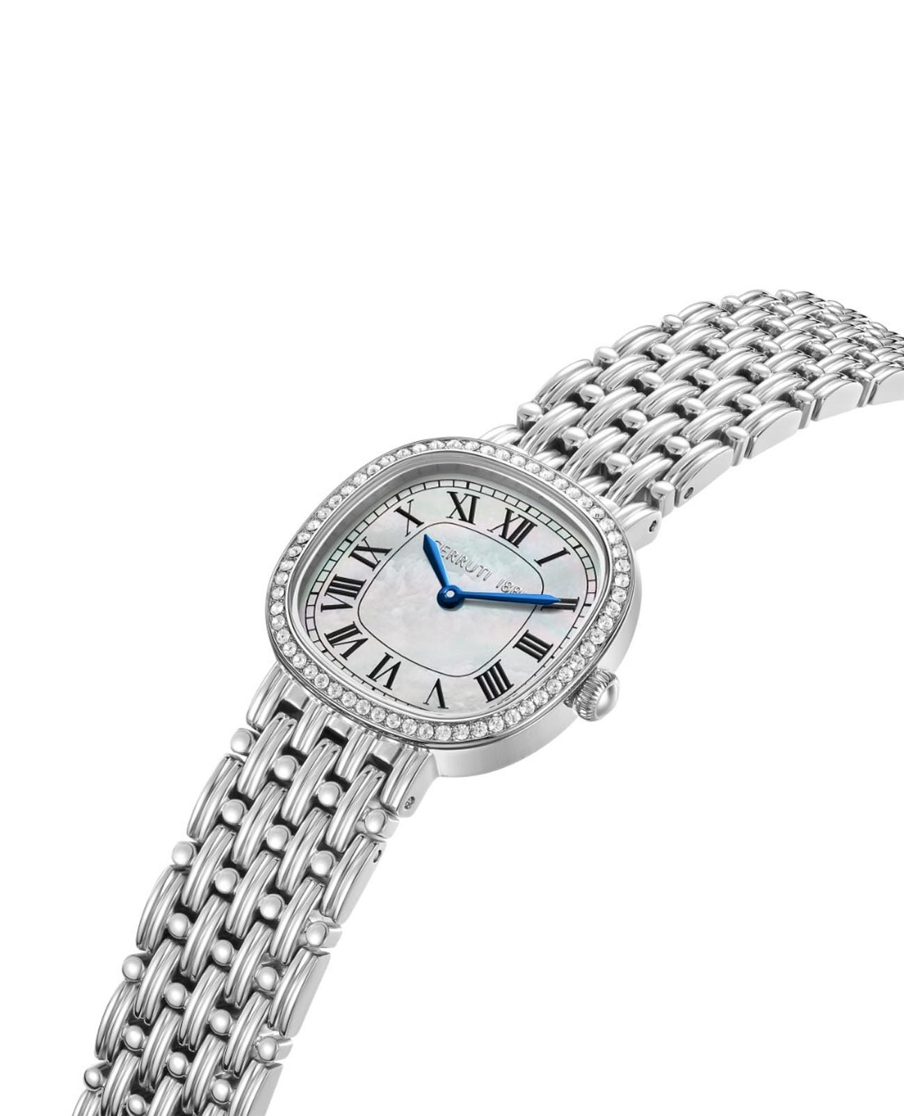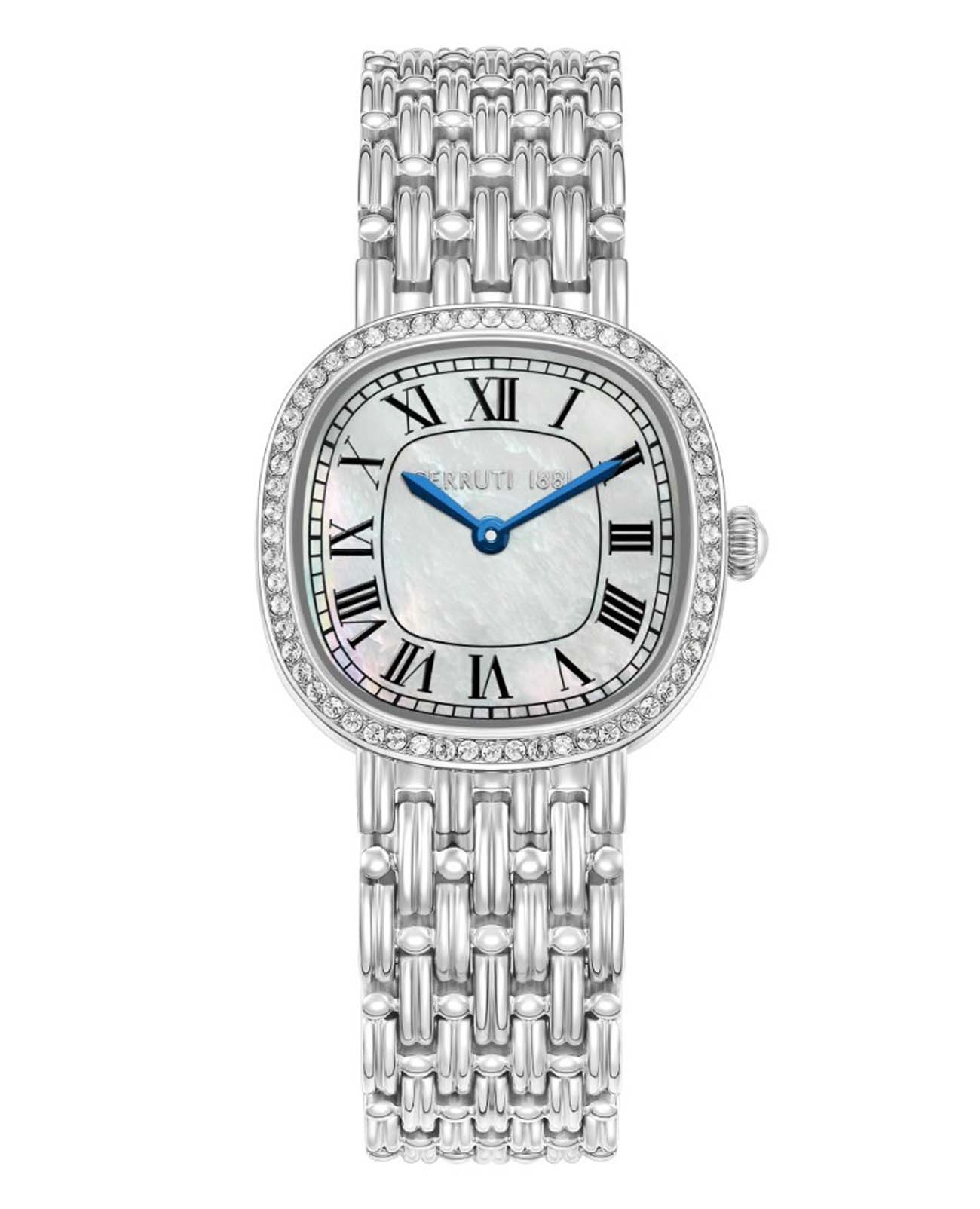 Французские женские часы с кристаллами Cerruti 1881 Gresta CIWLG0023801, кварцевый механизм с высокой точностью. Минеральное стеклоМинеральное стеклоМинеральное стекло представляет собой искусственно выращенный минерал кварца. Такое стекло отличается особой устойчивостью к повреждениям и царапинам. Уступает по некоторым качествам сапфировому стеклу. устойчивое к мелким механическим повреждениям. Корпус часов изготовлен из стали. БезельБезельВнешний ободок, закрепляющий стекло. В спортивных часах так называется поворотное кольцо с делениями на циферблате, выполняет роль таймера – замеряет отрезки времени на шкале. Неподвижный безель – элемент декора. Однонаправленно вращающийся безель на дайверских часах позволяет фиксировать моменты погружения и выныривания на поверхность. из стали украшен кристаллами. Циферблат модели выполнен с метками в виде римских цифр. Класс водозащиты: 30 метров, позволит защитить корпус от случайных брызг или капель дождя. Стальной браслет на застёжке «бабочка» с кнопкамиЗастёжка "бабочка"Такой вид застёжки дополняется предохранителями, помогающими избежать случайного раскрытия браслета. Обладают изящным исполнением. .