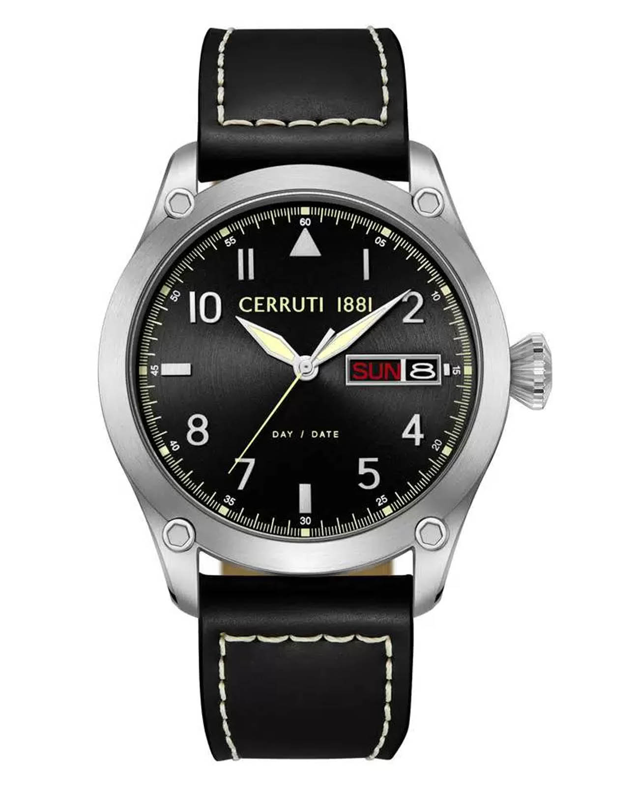 Французские мужские часы Cerruti 1881 BORGATELLO CIWGB0023101, кварцевый механизм с высокой точностью. Минеральное стеклоМинеральное стеклоМинеральное стекло представляет собой искусственно выращенный минерал кварца. Такое стекло отличается особой устойчивостью к повреждениям и царапинам. Уступает по некоторым качествам сапфировому стеклу. устойчивое к мелким механическим повреждениям. Корпус часов изготовлен из стали. Циферблат выполнен с метками в виде арабских цифр. Окошко даты и дня недели находится в положении 3 часа. Стрелки и метки с люминесцентным покрытиемЛюминесцентное покрытиеПозволяет считывать показания времени в темноте. Производители наносят на стрелки, часовые индексы, безель или поверхность циферблата светонакопительный состав, дающий холодное свечение.. Класс водозащиты: 50 метров, позволит защитить корпус от случайных брызг или капель дождя. Кожаный ремешок на стандартной застежке.