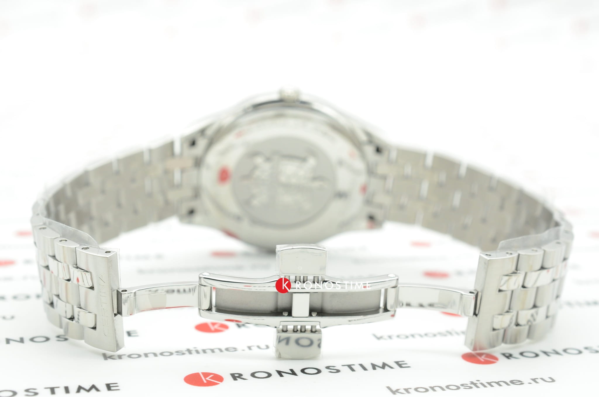 Стильный аксессуар в минималистичном оформлении охарактеризует вас как человека, который действительно разбирается в часах. Модель отличается повышенной точностью хода, это подтверждено официальным сертификатом хронометра COSCСертификат COSCОфициальный сертификат, подтверждающий то, что часы ходят с особо высокой точностью. Для получения документа часы подвергаются тестовым испытаниям, разработанным швейцарским институтом тестирования хронометров COSC. Допустимая норма для механических часов -4/+6 секунд в день, для кварцевых моделей +/- 0,07 секунд в день.. Часы обладают ударопрочным корпусомУдаропрочный корпусМеханизм заключён в корпус, выполненный из современных материалов, устойчивых к ударам, механическим повреждениям и падению с высоты: инновационный пластик, карбон, нержавеющая сталь, титан. и водонепроницаемостью до 10 бар - такие безупречные характеристики появились благодаря фирменной концепции DS ConceptDS ConceptDouble Security Concept, обозначает двойную надёжность и безупречную точность часов Certina. Двойная система защиты подразумевает обеспечение максимальной устойчивости к ударам и высоких показателей водонепроницаемости.. Швейцарский кварцевый механизм ETA F07.412 Precidrive™Precidrive™Инновационный кварцевый механизм Certina. Часы, оснащённые этим швейцарским калибром, приравниваются к точности к сертифицированным хронометрам, точность хода составляет +/-10 секунд в год.. Стекло из сапфира с антибликовым покрытием. Корпус и браслет из нержавеющей стали 316L. Индикация числа, функция EOLEOLПредставляет собой систему, уведомляющую владельца часов о необходимости замены элемента питания. За 2 недели до полного разряда батарейки секундная стрелка перестаёт ходить чётко и начинает перепрыгивать на 3-4 деления.. Диаметр корпуса: 40,2 мм.