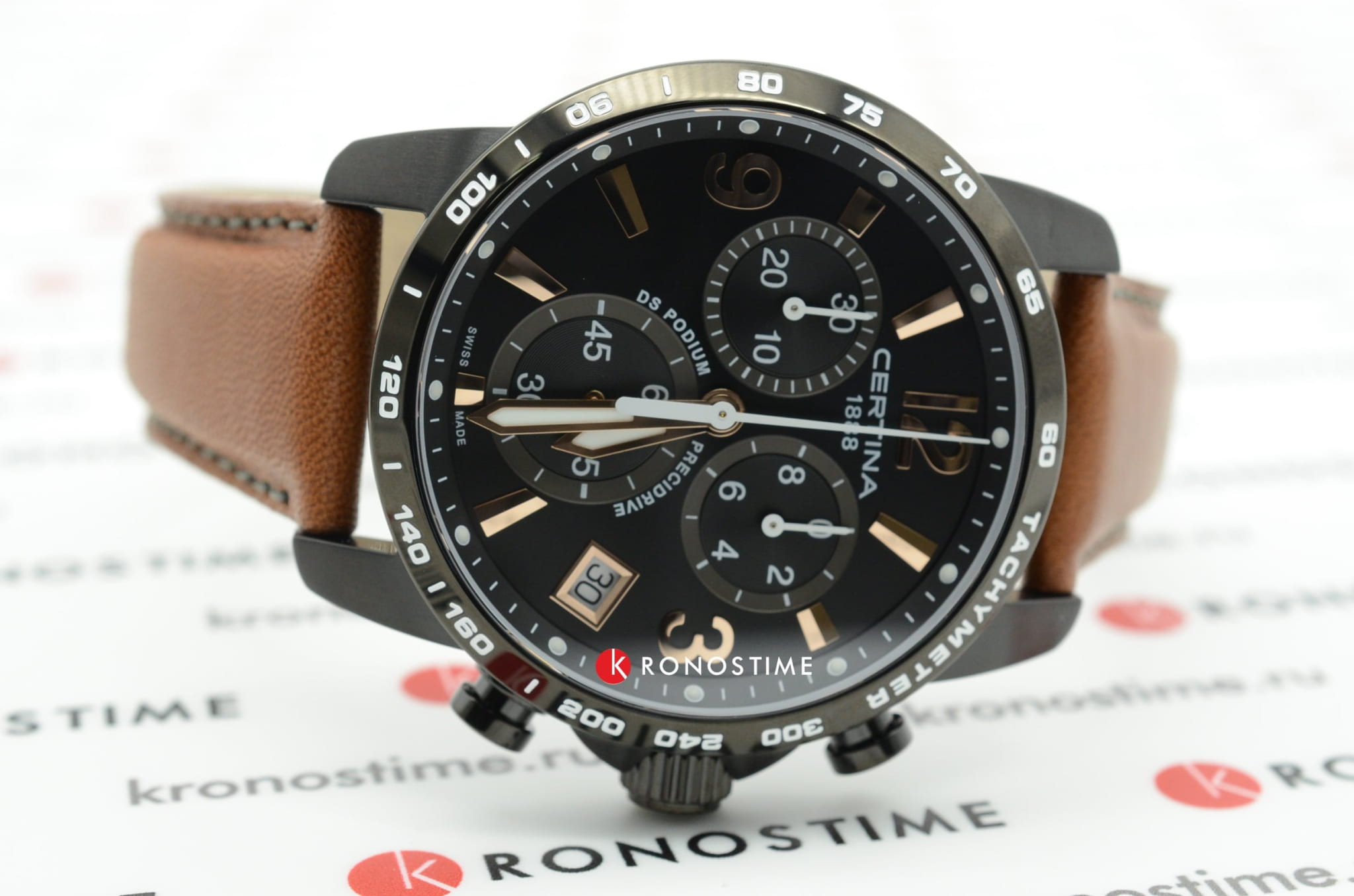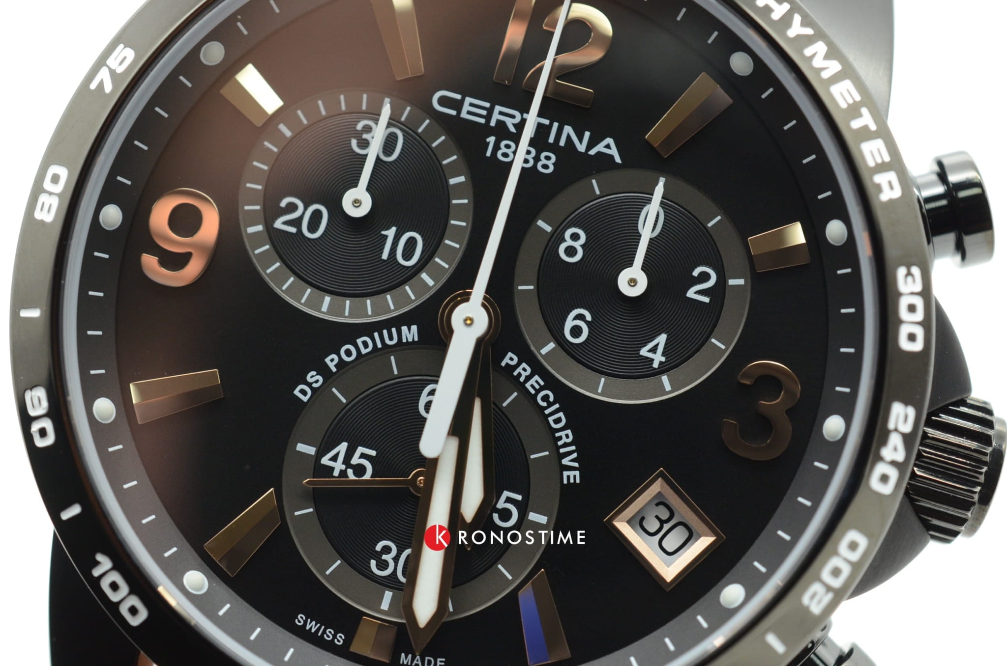 Аксессуар станет неотъемлемым атрибутом образа, наполнит его стильной динамичностью. Швейцарский кварцевый калибр ETA G10.212 Precidrive™Precidrive™Инновационный кварцевый механизм Certina. Часы, оснащённые этим швейцарским калибром, приравниваются к точности к сертифицированным хронометрам, точность хода составляет +/-10 секунд в год. измеряет время с абсолютной точностью, позволяя всегда находиться в центре событий. Концепция Двойной Надёжности DS ConceptDS ConceptDouble Security Concept, обозначает двойную надёжность и безупречную точность часов Certina. Двойная система защиты подразумевает обеспечение максимальной устойчивости к ударам и высоких показателей водонепроницаемости.. Антибликовая поверхность стекла из сапфира. Люминесцентная подсветкаЛюминесцентное покрытиеПозволяет считывать показания времени в темноте. Производители наносят на стрелки, часовые индексы, безель или поверхность циферблата светонакопительный состав, дающий холодное свечение. стрелок. БезельБезельВнешний ободок, закрепляющий стекло. В спортивных часах так называется поворотное кольцо с делениями на циферблате, выполняет роль таймера – замеряет отрезки времени на шкале. Неподвижный безель – элемент декора. Однонаправленно вращающийся безель на дайверских часах позволяет фиксировать моменты погружения и выныривания на поверхность. со шкалой тахиметраТахиметрРазмеченная шкала, располагается на ободке или безеле часов. Тахиметр позволяет рассчитать скорость на определённом участке пути, расстояние измеряется в километрах или милях.. Заводная головка с системой защиты. Ударопрочный корпусУдаропрочный корпусМеханизм заключён в корпус, выполненный из современных материалов, устойчивых к ударам, механическим повреждениям и падению с высоты: инновационный пластик, карбон, нержавеющая сталь, титан. из нержавеющей стали с чёрным PVD-покрытиемPVDУльтратонкое покрытие наносится в технике вакуумного напыления, сочетает в себе нитрид титана особой прочности со слоем золота или оксида хрома. Несёт в себе декоративную или защитную функцию.. Ремешок из натуральной кожи. Безопасная . Окошко даты, секундомер, измеряющий десятые доли секунды, индикатор EOLEOLПредставляет собой систему, уведомляющую владельца часов о необходимости замены элемента питания. За 2 недели до полного разряда батарейки секундная стрелка перестаёт ходить чётко и начинает перепрыгивать на 3-4 деления.. Диаметр корпуса: 41 мм.