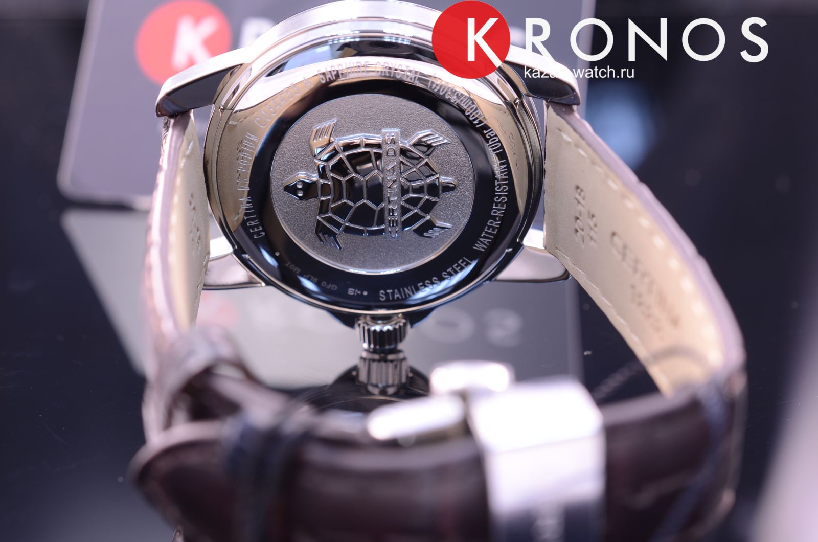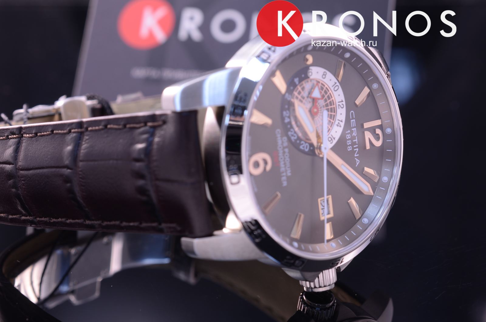 Модель в сдержанном оформлении имеет крупную индикацию времени, что обеспечивает идеальную читаемость данных. Циферблат дополнен оригинальным окошком, выполняющим индикацию часовых поясов. Часы оснащены швейцарским кварцевым механизмом ETA Precidrive™Precidrive™Инновационный кварцевый механизм Certina. Часы, оснащённые этим швейцарским калибром, приравниваются к точности к сертифицированным хронометрам, точность хода составляет +/-10 секунд в год., абсолютная точность которого отмечена сертификатом хронометра COSCСертификат COSCОфициальный сертификат, подтверждающий то, что часы ходят с особо высокой точностью. Для получения документа часы подвергаются тестовым испытаниям, разработанным швейцарским институтом тестирования хронометров COSC. Допустимая норма для механических часов -4/+6 секунд в день, для кварцевых моделей +/- 0,07 секунд в день.. Сапфировое стекло с односторонним антибликовым покрытием. Защищённая заводная головка. Ремешок из натуральной кожи. Надёжный стальной корпус. Люминесцентная подсветкаЛюминесцентное покрытиеПозволяет считывать показания времени в темноте. Производители наносят на стрелки, часовые индексы, безель или поверхность циферблата светонакопительный состав, дающий холодное свечение.. Апертура даты, функция GMTGMTОтображение времени второго часового пояса.Такая функция особенно актуальна для путешественников и бизнесменов,которые общаются с людьми из разных стран,теперь вы всегда будете знать,какой час у вашего партнёра или близкого человека.. Диаметр корпуса: 41 мм.