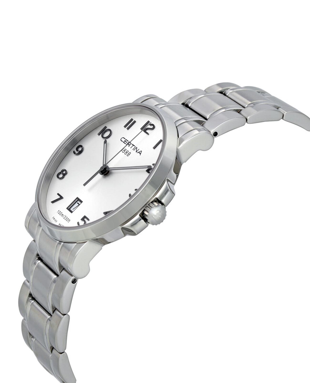 Мужские швейцарские часы Certina DS Spel C0124172103700, кварцевый механизм с высокой точностью. Сапфировое стеклоСапфировое стеклоПрочный и надёжный материал из кристалла сапфира синтетического происхождения, характеризующийся особой твёрдостью и устойчивостью к царапинам и повреждениям. устойчивое к появлению царапин, обладающее высокой прозрачностью. Корпус изготовлен из нержавеющей стали. Стрелки с люминесцентным покрытиемЛюминесцентное покрытиеПозволяет считывать показания времени в темноте. Производители наносят на стрелки, часовые индексы, безель или поверхность циферблата светонакопительный состав, дающий холодное свечение.. Окошко даты находится в положении 6 часов. Класс водозащиты: 100 метров, позволит плавать, нырять и заниматься другими водными видами спорта. Стальной браслет на раскладной застёжкеРаскладная застёжкаТакой тип застёжки используется только на браслетах из металла. Она никогда не раскрывается полностью, происходит разделение на 2 и более частей. Раскладывающая застёжка снизит вероятность потери часов к минимуму..