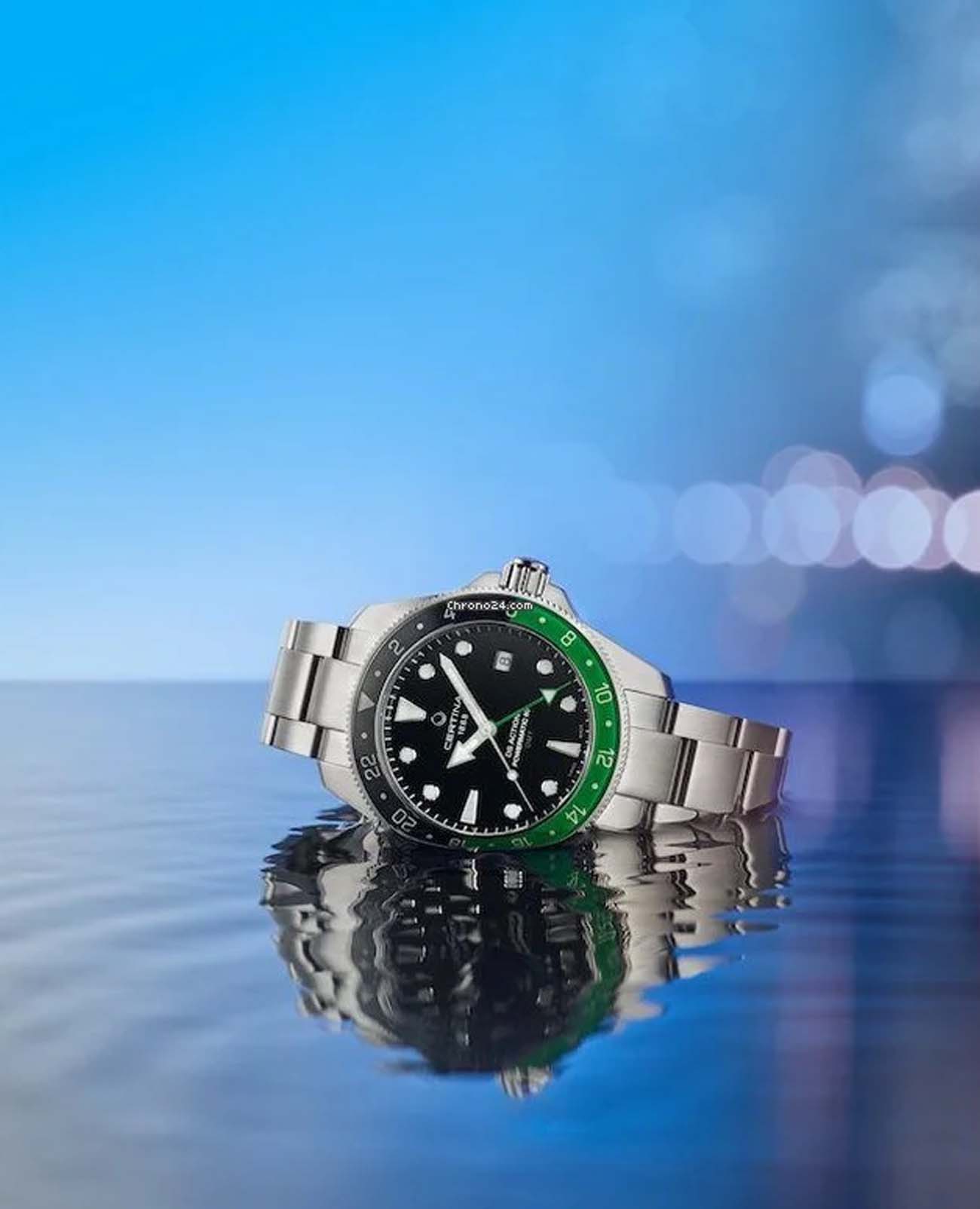 Мужские швейцарские механические часы с автоподзаводом Certina DS Action Diver C032.929.11.051.00, механический механизм (автоматический калибр) с высокой точностью. Сапфировое стеклоСапфировое стеклоПрочный и надёжный материал из кристалла сапфира синтетического происхождения, характеризующийся особой твёрдостью и устойчивостью к царапинам и повреждениям. устойчивое к появлению царапин, обладающее высокой прозрачностью. Корпус изготовлен из нержавеющей стали. БезельБезельВнешний ободок, закрепляющий стекло. В спортивных часах так называется поворотное кольцо с делениями на циферблате, выполняет роль таймера – замеряет отрезки времени на шкале. Неподвижный безель – элемент декора. Однонаправленно вращающийся безель на дайверских часах позволяет фиксировать моменты погружения и выныривания на поверхность. из стали с сапфировым стеклом. Стрелки и метки с люминесцентным покрытиемЛюминесцентное покрытиеПозволяет считывать показания времени в темноте. Производители наносят на стрелки, часовые индексы, безель или поверхность циферблата светонакопительный состав, дающий холодное свечение.. Окошко даты находится в положении 3 часа. Класс водозащиты: 200 метров, позволит плавать, нырять и заниматься другими водными видами спорта. Стальной браслет на раскладной застёжкеРаскладная застёжкаТакой тип застёжки используется только на браслетах из металла. Она никогда не раскрывается полностью, происходит разделение на 2 и более частей. Раскладывающая застёжка снизит вероятность потери часов к минимуму..
