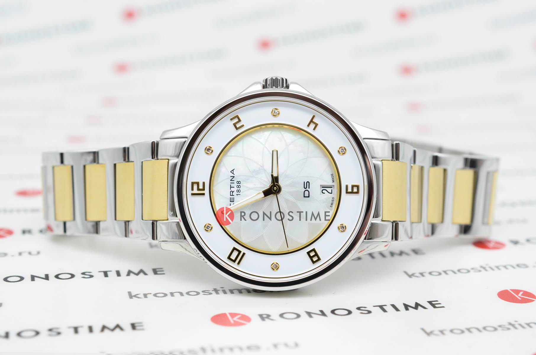 Женские кварцевые часы Certina C039.251.12.116.00 — это изысканный аксессуар, сочетающий в себе надёжность, точность и элегантный дизайн. Модель выполнена в круглой форме из нержавеющей стали с диаметром корпуса 35 мм и толщиной 8 мм, что делает её удобной для повседневного ношения. Циферблат белого цвета дополнен перламутровым покрытием и инкрустирован бриллиантами, придающими модели роскошный внешний вид. Защиту механизма обеспечивает сапфировое стеклоСапфировое стеклоПрочный и надёжный материал из кристалла сапфира синтетического происхождения, характеризующийся особой твёрдостью и устойчивостью к царапинам и повреждениям., устойчивое к царапинам и механическим повреждениям. Ремешок из нержавеющей стали серебристо-золотистого цвета оснащён классической застёжкой, обеспечивающей комфорт и надёжную фиксацию на запястье. Часы водонепроницаемы до 100 метров (, что позволяет использовать их при плавании и других водных активностях без глубокого погружения. Гарантия 2 года подтверждает качество и долговечность изделия. Эти часы станут универсальным аксессуаром для тех, кто ценит сочетание стиля, функциональности и швейцарского мастерства — идеальный выбор для повседневной носки и торжественных случаев.