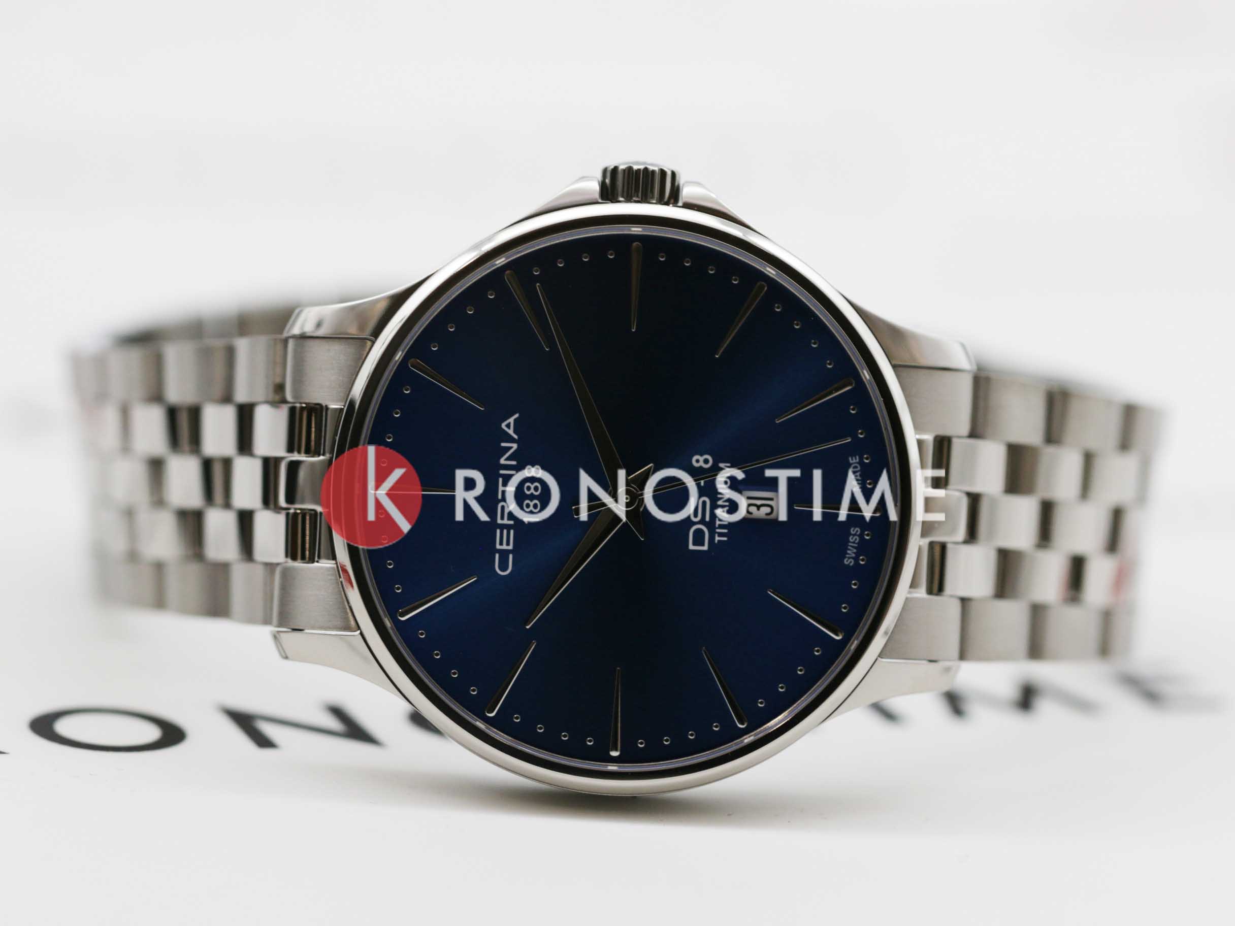 Швейцарские кварцевые мужские часы Certina DS-8 Gent C045.410.44.041.00 — это воплощение элегантности, прочности и точности. Модель выполнена из титана — лёгкого и гипоаллергенного материала, устойчивого к коррозии и повреждениям, что делает часы комфортными в носке и долговечными. Часы оснащены механизмом калибра ETA F05.412, обеспечивающим высокую точность хода, а также функцией индикатора разряда батареиEOLПредставляет собой систему, уведомляющую владельца часов о необходимости замены элемента питания. За 2 недели до полного разряда батарейки секундная стрелка перестаёт ходить чётко и начинает перепрыгивать на 3-4 деления., которая своевременно предупредит о необходимости замены элемента питания. На циферблате синего цвета чётко выделяются белые стрелки и метки, что гарантирует отличную читаемость. Окошко даты размещено в положении 3 часов, дополняя функциональность модели. Защиту циферблата обеспечивает сапфировое стеклоСапфировое стеклоПрочный и надёжный материал из кристалла сапфира синтетического происхождения, характеризующийся особой твёрдостью и устойчивостью к царапинам и повреждениям. с антибликовым покрытиемАнтибликовое покрытиеСлой оксида металла в 0,13-0,3 микрон, благодаря которому стекло часов не бликует и не отражает свет. Антибликовое покрытие уменьшает отражение света в 10 раз, обеспечивая отличную читаемость показателей циферблата., устойчивое к царапинам и обеспечивающее комфортное считывание информации при любом освещении. Завинчивающаяся заводная головка защищаетУдаропрочный корпусМеханизм заключён в корпус, выполненный из современных материалов, устойчивых к ударам, механическим повреждениям и падению с высоты: инновационный пластик, карбон, нержавеющая сталь, титан. механизм от случайных повреждений и пыли. Часы обладают водонепроницаемостью , что позволяет использовать их при плавании и других водных активностях. Толщина корпуса составляет 10,35 мм, а его диаметр — 40 мм, что делает модель идеально сбалансированной на запястье. Браслет из титана дополнен застёжкой-бабочкой с кнопкамиЗастёжка "бабочка"Такой вид застёжки дополняется предохранителями, помогающими избежать случайного раскрытия браслета. Обладают изящным исполнением. , обеспечивающей комфорт и уверенную фиксацию на руке. Такое сочетание материалов и дизайна подчёркивает строгий и современный стиль модели. Эти часы станут универсальным аксессуаром для тех, кто ценит точность, качество и лаконичный дизайн — идеальный выбор для уверенных в себе мужчин, следящих за своим образом и статусом.