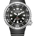 Мужские часы Citizen Promaster BN1024-01E спортивного дизайна с высоким уровнем водозащиты. Корпус из нержавеющей стали диаметром 46 мм идеально сбалансирован. Сапфировое стеклоСапфировое стеклоПрочный и надёжный материал из кристалла сапфира синтетического происхождения, характеризующийся особой твёрдостью и устойчивостью к царапинам и повреждениям. с антибликовым покрытием обеспечивает отличную защиту циферблата от царапин. Часы работают на основе кварцевого механизма, функция Eco-Drive (заряжается от любого источника света, не требующей замены батарейки). Каучуковый ремешок на стандартной застёжке идеально дополняют дизайн часов, обеспечивая комфортное ношение. Стрелки и метки на циферблате имеют люминесцентное покрытиеЛюминесцентное покрытиеПозволяет считывать показания времени в темноте. Производители наносят на стрелки, часовые индексы, безель или поверхность циферблата светонакопительный состав, дающий холодное свечение. позволяющее легко определять время даже в темноте. БезельБезельВнешний ободок, закрепляющий стекло. В спортивных часах так называется поворотное кольцо с делениями на циферблате, выполняет роль таймера – замеряет отрезки времени на шкале. Неподвижный безель – элемент декора. Однонаправленно вращающийся безель на дайверских часах позволяет фиксировать моменты погружения и выныривания на поверхность. с IP-покрытиемIP-покрытиеМетод ионного напыления. Демонстрирует повышенную устойчивость к истиранию, окислению и химическим веществам. Под воздействием высокого давления и температуры около 1500°C молекулы металла надёжно соединяются с частицами корпуса часов. вращается в одном направлении. Функция индикации заряда (EOL) и предотвращения перезарядки. Окошко даты находится в положении 4 часа. Часы обладают впечатляющей водонепроницаемостью до 300WR, что делает их идеальными для плавания, ныряния и погружений с аквалангом.