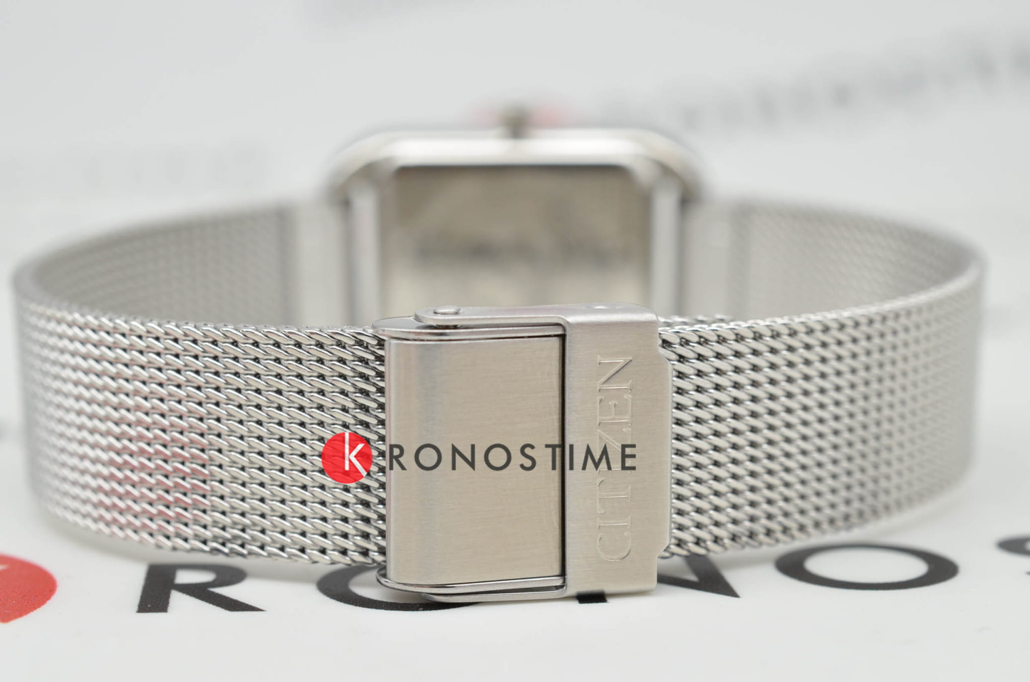 Часы Citizen EM0491-81D созданы для тех, кто ценит элегантность и современные технологии в одном аксессуаре. Корпус выполнен из прочной нержавеющей стали и гармонично сочетается с изысканным стальным браслетом миланского плетения с раскладным замкомРаскладной замокДанный вариант застежки используется только на часах с металлическим браслетом. Отличительная особенность такого крепления в том, что длина браслета становится универсальной и вы можете самостоятельно отрегулировать нужный вам размер – застежка просто двигается по браслету часов., обеспечивающим комфортную посадку на запястье. Особое внимание привлекает перламутровый белый циферблат, украшенный мерцающими кристаллами, которые придают часам особый шарм и изысканность. Метки выполнены в виде аккуратных штрихов, что обеспечивает лёгкое считывание времени. Часы оснащены надёжным кварцевым механизмом Citizen E031 с инновационной системой Eco-Drive, которая позволяет заряжать устройство от любого источника света и не требует замены батарейки. Запас хода составляет до 180 дней, а функция индикации заряда EOLEOLПредставляет собой систему, уведомляющую владельца часов о необходимости замены элемента питания. За 2 недели до полного разряда батарейки секундная стрелка перестаёт ходить чётко и начинает перепрыгивать на 3-4 деления. своевременно напомнит о необходимости подзарядки. Прочное минеральное стеклоМинеральное стеклоМинеральное стекло представляет собой искусственно выращенный минерал кварца. Такое стекло отличается особой устойчивостью к повреждениям и царапинам. Уступает по некоторым качествам сапфировому стеклу. защищает циферблат от царапин и повреждений, а водозащита до 30 метров позволяет не беспокоиться о случайных брызгах воды. Размер корпуса составляет 24 х 32 мм. Лёгкий вес всего 42 грамма, толщина корпуса 7,7 мм и ширина браслета 14 мм делают эту модель удобной для повседневного ношения и подчёркивают стильный образ.