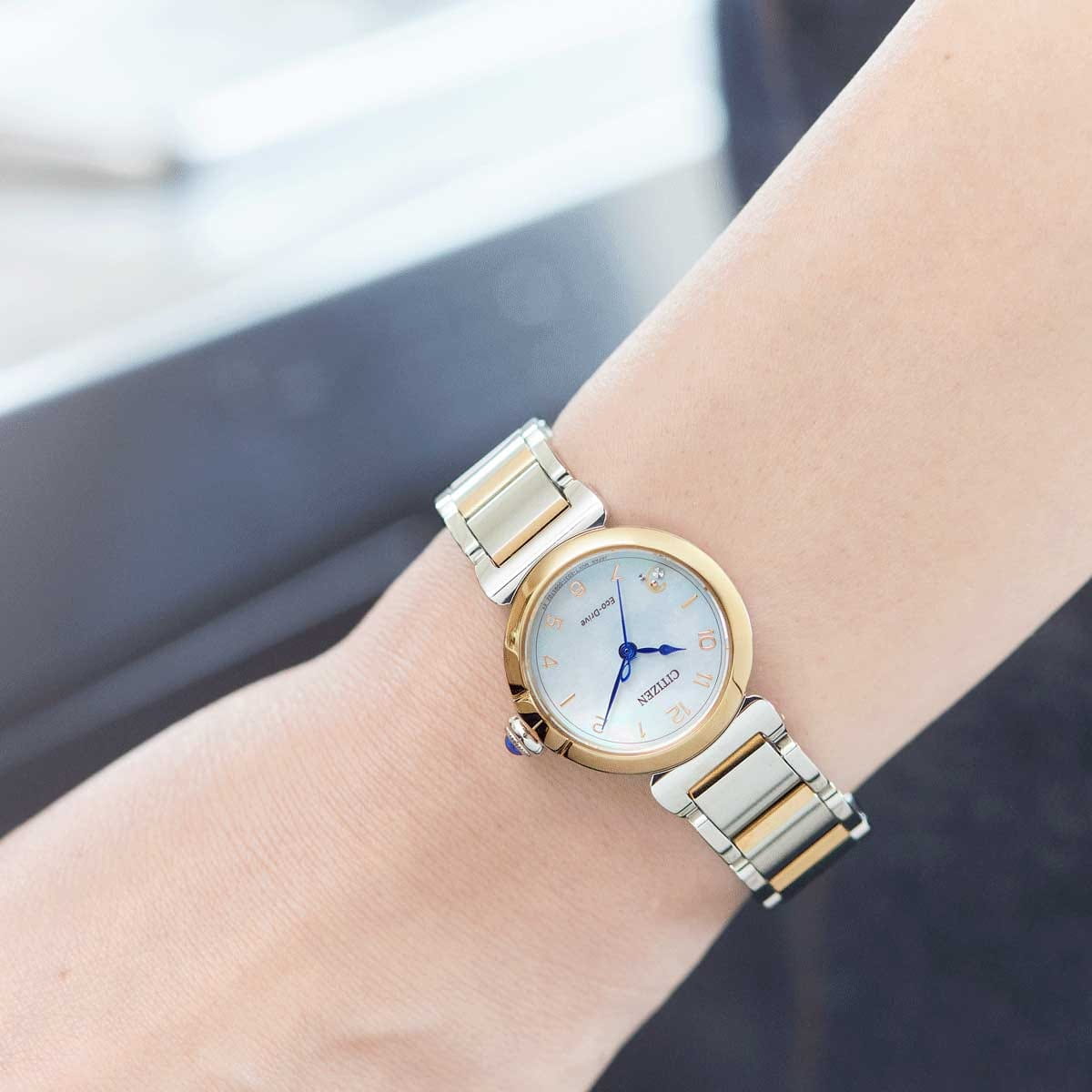 Элегантные японские часы Citizen EM1136-87D сочетают в себе современные технологии и изысканный дизайн. Кварцевый механизм Eco-Drive Caliber E031 обеспечивает высокую точность и не требует замены батареек, получая энергию от любого источника света. Корпус диаметром 26 мм и толщиной 8,1 мм выполнен из прочной нержавеющей стали, вес модели составляет 70 гр, а безельБезельВнешний ободок, закрепляющий стекло. В спортивных часах так называется поворотное кольцо с делениями на циферблате, выполняет роль таймера – замеряет отрезки времени на шкале. Неподвижный безель – элемент декора. Однонаправленно вращающийся безель на дайверских часах позволяет фиксировать моменты погружения и выныривания на поверхность. с золотистым IP-покрытиемIP-покрытиеМетод ионного напыления. Демонстрирует повышенную устойчивость к истиранию, окислению и химическим веществам. Под воздействием высокого давления и температуры около 1500°C молекулы металла надёжно соединяются с частицами корпуса часов., что придаёт аксессуару особый шарм. Сапфировое стеклоСапфировое стеклоПрочный и надёжный материал из кристалла сапфира синтетического происхождения, характеризующийся особой твёрдостью и устойчивостью к царапинам и повреждениям. отличается высокой устойчивостью к царапинам и мелким повреждениям. Перламутровый циферблат украшен арабскими цифрами и аккуратными метками в виде точек. Центральные часовая, минутная и секундная стрелки обеспечивают удобное считывание времени. Стальной браслет с частичным золотистым IP-покрытиемIP-покрытиеМетод ионного напыления. Демонстрирует повышенную устойчивость к истиранию, окислению и химическим веществам. Под воздействием высокого давления и температуры около 1500°C молекулы металла надёжно соединяются с частицами корпуса часов. оснащён надёжной застежкой «бабочка»Застёжка "бабочка"Такой вид застёжки дополняется предохранителями, помогающими избежать случайного раскрытия браслета. Обладают изящным исполнением. . Водонепроницаемость на уровне WR 50 позволяет не снимать часы во время мытья рук или прогулок под дождём.
