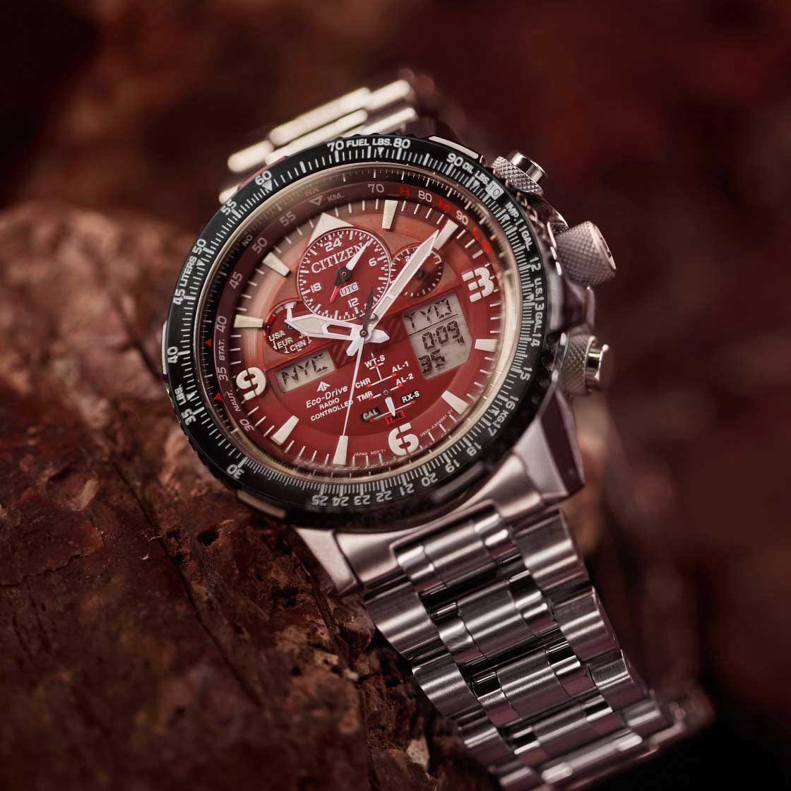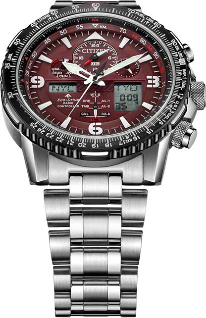 Citizen Promaster JY8086-89X часы-хронографХронографФункция позволяет измерять отрезки времени с особой точностью: часы, минуты, секунды. Верным признаком хронографа является наличие на циферблате 3 дополнительных окошек-счётчиков. с секундомеромСекундомерСекундоме́р — прибор, способный измерять интервалы времени с точностью до долей секунды. спортивного дизайна с высоким уровнем водозащиты. Корпус из нержавеющей стали диаметром 45,4 мм идеально сбалансирован. Сапфировое стеклоСапфировое стеклоПрочный и надёжный материал из кристалла сапфира синтетического происхождения, характеризующийся особой твёрдостью и устойчивостью к царапинам и повреждениям. с антибликовым покрытием обеспечивает отличную защиту циферблата от царапин. Часы работают на основе кварцевого механизма, питание от солнечной энергии. Стальной браслет на раскладной застёжкеРаскладная застёжкаТакой тип застёжки используется только на браслетах из металла. Она никогда не раскрывается полностью, происходит разделение на 2 и более частей. Раскладывающая застёжка снизит вероятность потери часов к минимуму. идеально дополняют дизайн часов, обеспечивая комфортное ношение. Стрелки и метки на циферблате имеют люминесцентное покрытиеЛюминесцентное покрытиеПозволяет считывать показания времени в темноте. Производители наносят на стрелки, часовые индексы, безель или поверхность циферблата светонакопительный состав, дающий холодное свечение. позволяющее легко определять время даже в темноте. Поворотный безельБезельВнешний ободок, закрепляющий стекло. В спортивных часах так называется поворотное кольцо с делениями на циферблате, выполняет роль таймера – замеряет отрезки времени на шкале. Неподвижный безель – элемент декора. Однонаправленно вращающийся безель на дайверских часах позволяет фиксировать моменты погружения и выныривания на поверхность. с IP-покрытиемIP-покрытиеМетод ионного напыления. Демонстрирует повышенную устойчивость к истиранию, окислению и химическим веществам. Под воздействием высокого давления и температуры около 1500°C молекулы металла надёжно соединяются с частицами корпуса часов.. Автоматический прием сигналов от радиовышек, расположенных в различных точках земного шара, которые передают временные сигналы от определенных атомных часов. Коррекция текущего времени радиосигналом на территории почти всей Европы, США, Японии и Китая. Функция индикации заряда (EOL) и предотвращения перезарядки. Мировое времяМировое время Полезное часовое усложнение, отображающее время в основных городах и известных областях по всему миру, оно связано с часовыми поясами, удобно для путешественников и бизнесменов. - 43 города (29 часовых поясов), переход на зимнее и летнее время. Всемирное координированное время UTCUTCВсемирное кординационное время, не имеющее привязки к географическому положению Гринвича, основывается на атомном отсчёте времени. Регулировка времени осуществляется более точно, чем устаревшее GMT.