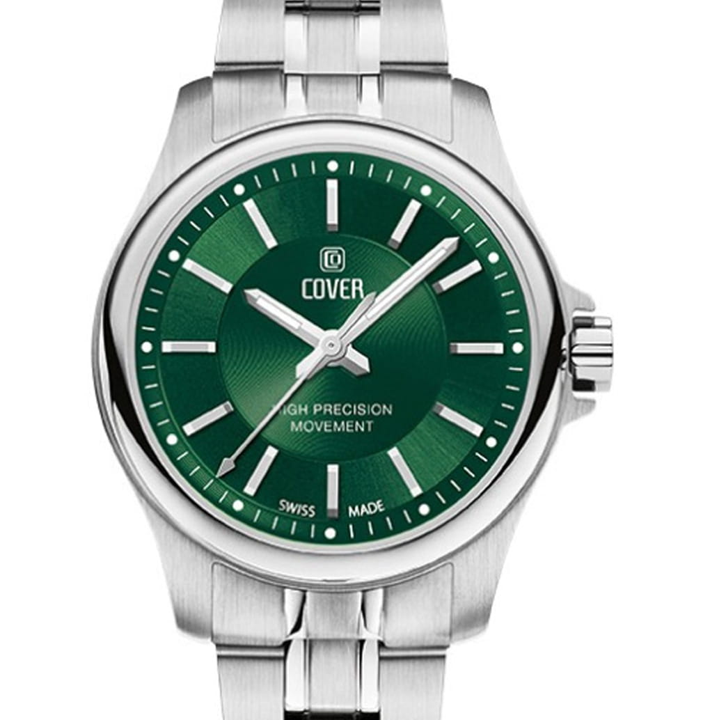 Женские наручные часы Cover CO201.31 из коллекции Marville сочетают в себе классический дизайн и высокую точность швейцарского производства. Модель обладает круглым корпусом диаметром 28 мм, изготовленным из нержавеющей стали, что придает изделию благородный внешний вид. Зеленый циферблат оснащен стрелками с люминесцентным покрытиемЛюминесцентное покрытиеПозволяет считывать показания времени в темноте. Производители наносят на стрелки, часовые индексы, безель или поверхность циферблата светонакопительный состав, дающий холодное свечение.. Для защиты используется сапфировое стеклоСапфировое стеклоПрочный и надёжный материал из кристалла сапфира синтетического происхождения, характеризующийся особой твёрдостью и устойчивостью к царапинам и повреждениям. с антибликовым покрытиемАнтибликовое покрытиеСлой оксида металла в 0,13-0,3 микрон, благодаря которому стекло часов не бликует и не отражает свет. Антибликовое покрытие уменьшает отражение света в 10 раз, обеспечивая отличную читаемость показателей циферблата., обеспечивающее прочную защиту от царапин и превосходную читаемость времени даже при ярком свете. Часы работают на высокоточном кварцевом механизме ETA, гарантирующем исключительную точность хода с погрешностью около 20 секунд в месяц. Браслет выполнен из нержавеющей стали и оснащен раскладной застежкойРаскладная застёжкаТакой тип застёжки используется только на браслетах из металла. Она никогда не раскрывается полностью, происходит разделение на 2 и более частей. Раскладывающая застёжка снизит вероятность потери часов к минимуму., обеспечивающей комфортное ношение и безопасность. Водонепроницаемость достигает 10 атмосфер (100 метров), что позволяет использовать их во время плавания и других водных видов спорта, однако не рекомендуется для глубоководного дайвинга. Эти швейцарские часы станут идеальным дополнением как классического, так и современного образа.