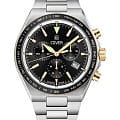 Мужские наручные часы-хронографХронографФункция позволяет измерять отрезки времени с особой точностью: часы, минуты, секунды. Верным признаком хронографа является наличие на циферблате 3 дополнительных окошек-счётчиков. Cover CO212.03 из коллекции Iconosteel сочетают в себе классический дизайн и надежность современных технологий. Модель обладает круглым корпусом диаметром 41 мм, изготовленным из нержавеющей стали с частичным PVD-покрытиемPVDУльтратонкое покрытие наносится в технике вакуумного напыления, сочетает в себе нитрид титана особой прочности со слоем золота или оксида хрома. Несёт в себе декоративную или защитную функцию., что обеспечивает высокую устойчивость к внешним воздействиям. Браслет выполнен из нержавеющей стали с раскладной застежкойРаскладной замокДанный вариант застежки используется только на часах с металлическим браслетом. Отличительная особенность такого крепления в том, что длина браслета становится универсальной и вы можете самостоятельно отрегулировать нужный вам размер – застежка просто двигается по браслету часов., гарантирующей комфортное ношение и безопасность. Черный циферблат оснащен  окном даты на «4 часах» и стрелками с люминесцентным покрытиемЛюминесцентное покрытиеПозволяет считывать показания времени в темноте. Производители наносят на стрелки, часовые индексы, безель или поверхность циферблата светонакопительный состав, дающий холодное свечение.. Для защиты используется сапфировое стеклоСапфировое стеклоПрочный и надёжный материал из кристалла сапфира синтетического происхождения, характеризующийся особой твёрдостью и устойчивостью к царапинам и повреждениям., обеспечивающее прочную защиту от царапин и антибликовый эффект. Часы работают на кварцевом механизме, что гарантирует точное время без необходимости подзаводки. Модель также является хронографом, оснащенным функцией секундомераСекундомерСекундоме́р — прибор, способный измерять интервалы времени с точностью до долей секунды., делая ее идеальной для активного образа жизни. Водонепроницаемость часов достигает 10 атмосфер (100 метров), что позволяет использовать их во время плавания и других водных видов спорта, однако не рекомендуется для глубоководного дайвинга.