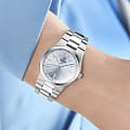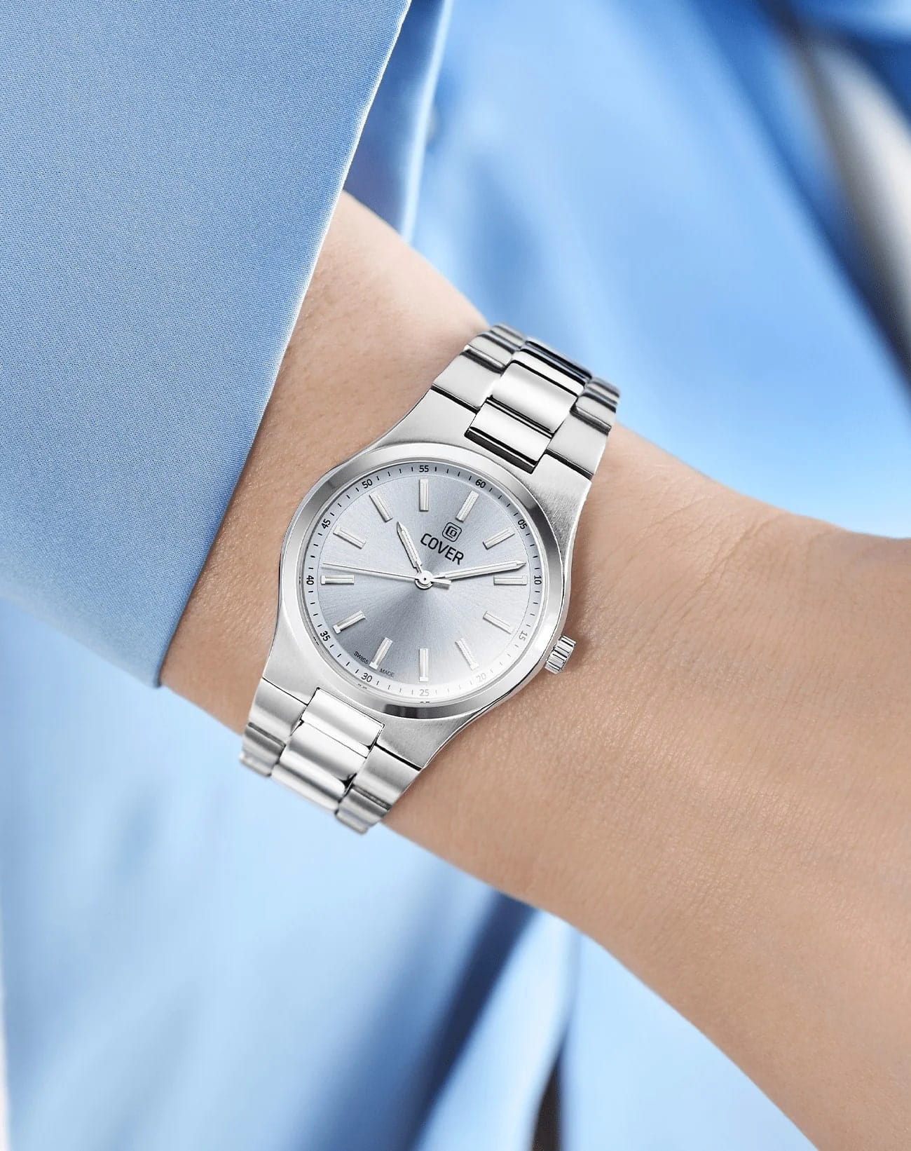 Cover Bracelet CO219.02 – элегантные женские часы, сочетающие классический стиль и современные технологии. Корпус диаметром 34 мм выполнен из нержавеющей стали 316L, что придаёт модели роскошный вид и дополнительную защиту. Циферблат с гильошированным узором и стрелками, покрытыми люминесцентным покрытиемЛюминесцентное покрытиеПозволяет считывать показания времени в темноте. Производители наносят на стрелки, часовые индексы, безель или поверхность циферблата светонакопительный состав, дающий холодное свечение., гарантирует отличную читаемость в любых условиях, а его поверхность защищена сапфировым стекломСапфировое стеклоПрочный и надёжный материал из кристалла сапфира синтетического происхождения, характеризующийся особой твёрдостью и устойчивостью к царапинам и повреждениям., устойчивым к царапинам. Часы оснащены швейцарским кварцевым механизмом. Браслет из нержавеющей стали дополнен раскладной застёжкойРаскладная застёжкаТакой тип застёжки используется только на браслетах из металла. Она никогда не раскрывается полностью, происходит разделение на 2 и более частей. Раскладывающая застёжка снизит вероятность потери часов к минимуму., обеспечивающей комфортное ношение и надёжную фиксацию. Водонепроницаемость 50 метров (5 ATM) делает модель идеальным выбором для повседневного использования и защиты от случайных брызг.