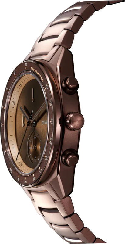 Элегантный хронограф D1 Milano Cronografo Essential Brown CHBJ22 - идеальное воплощение мужественности и стиля. Этот многофункциональный аксессуар оснащен секундомером, тахиметромТахиметрРазмеченная шкала, располагается на ободке или безеле часов. Тахиметр позволяет рассчитать скорость на определённом участке пути, расстояние измеряется в километрах или милях.. что делает его незаменимым компаньоном в повседневной жизни. Изысканный корпус и браслет выполнены из стали с PVD-покрытиемPVDУльтратонкое покрытие наносится в технике вакуумного напыления, сочетает в себе нитрид титана особой прочности со слоем золота или оксида хрома. Несёт в себе декоративную или защитную функцию.. Минималистичный дизайн циферблата, защищенный прочным сапфировым стекломСапфировое стеклоПрочный и надёжный материал из кристалла сапфира синтетического происхождения, характеризующийся особой твёрдостью и устойчивостью к царапинам и повреждениям. с антибликовым покрытиемАнтибликовое покрытиеСлой оксида металла в 0,13-0,3 микрон, благодаря которому стекло часов не бликует и не отражает свет. Антибликовое покрытие уменьшает отражение света в 10 раз, обеспечивая отличную читаемость показателей циферблата., привлекает внимание своей сдержанной красотой. Стрелки с люминесцентным покрытиемЛюминесцентное покрытиеПозволяет считывать показания времени в темноте. Производители наносят на стрелки, часовые индексы, безель или поверхность циферблата светонакопительный состав, дающий холодное свечение., обеспечивающим хорошую читаемость в темноте. Надежная конструкция с задней крышкой на 8 винтах и стильный браслет с удобной застёжкой «бабочка» с кнопкамиЗастёжка "бабочка"Такой вид застёжки дополняется предохранителями, помогающими избежать случайного раскрытия браслета. Обладают изящным исполнением. обеспечивают комфорт при ношении. Водозащита 50 метров защищает часы от брызг и дождя, делая их подходящими для повседневного использования. Это не просто часы, а статусный аксессуар, подчеркивающий безупречный вкус и внимание к деталям своего владельца.
