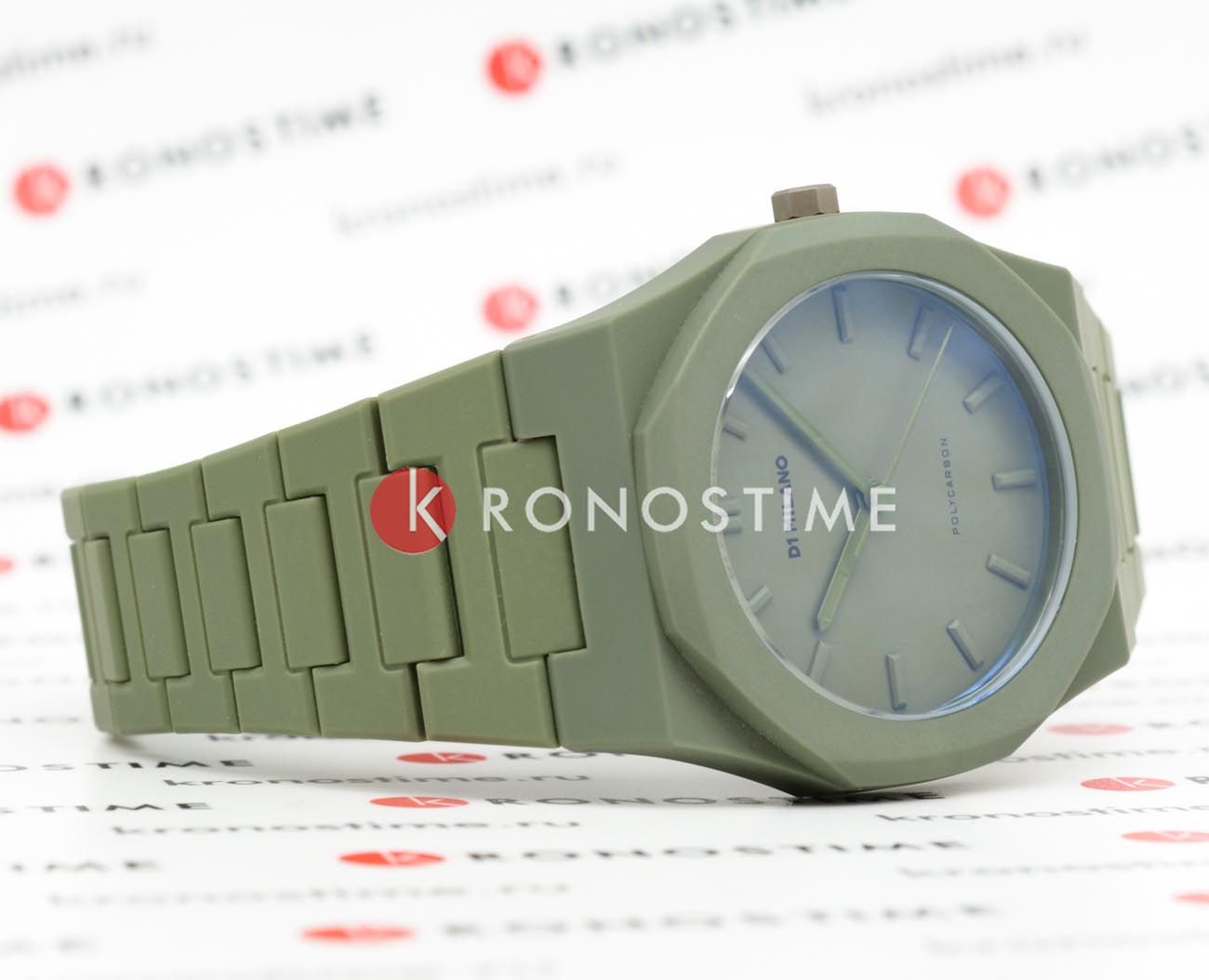 Часы D1 Milano Polycarbon PCBJ22 – молодежные часы в стиле унисекс для повседневных образов. Модель Military Green имеет зеленый корпус из поликарбоната с покрытием Софт-Тач. Циферблат лаконичный с индексами в виде штрихов, защищен минеральным стекломМинеральное стеклоМинеральное стекло представляет собой искусственно выращенный минерал кварца. Такое стекло отличается особой устойчивостью к повреждениям и царапинам. Уступает по некоторым качествам сапфировому стеклу. с антибликовым покрытием. Стальная задняя крышка на 4 винтах. Пластиковый браслет с раскладной застёжкойРаскладная застёжкаТакой тип застёжки используется только на браслетах из металла. Она никогда не раскрывается полностью, происходит разделение на 2 и более частей. Раскладывающая застёжка снизит вероятность потери часов к минимуму..