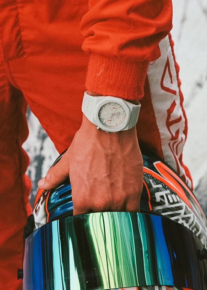 Часы D1 Milano x Prema PHBJPR — это элегантные кварцевые часы, которые впечатляют своим функциональным дизайном. Высокая надежность превращает эти часы в незаменимый аксессуар на каждый день. Модель оснащена хронографомХронографФункция позволяет измерять отрезки времени с особой точностью: часы, минуты, секунды. Верным признаком хронографа является наличие на циферблате 3 дополнительных окошек-счётчиков., секундомеромСекундомерСекундоме́р — прибор, способный измерять интервалы времени с точностью до долей секунды. и циферблатом, защищенным минеральным стекломМинеральное стеклоМинеральное стекло представляет собой искусственно выращенный минерал кварца. Такое стекло отличается особой устойчивостью к повреждениям и царапинам. Уступает по некоторым качествам сапфировому стеклу. с антибликовым покрытиемАнтибликовое покрытиеСлой оксида металла в 0,13-0,3 микрон, благодаря которому стекло часов не бликует и не отражает свет. Антибликовое покрытие уменьшает отражение света в 10 раз, обеспечивая отличную читаемость показателей циферблата.. Изысканный корпус из поликарбоната с покрытием Софт-Тач. На циферблате расположены накладные метки в виде штрихов и три дополнительных циферблата, а также окошко календаря в положении между отметками 4 и 5 часов. Пластиковый браслет с застежкой «бабочка»Застёжка "бабочка"Такой вид застёжки дополняется предохранителями, помогающими избежать случайного раскрытия браслета. Обладают изящным исполнением. . Стальная задняя крышка этих часов крепится на 4-х винтах. Водонепроницаемость до 50 метров делает эти часы идеальным выбором для повседневного использования. Лимитированная серия — 300 экземпляров.