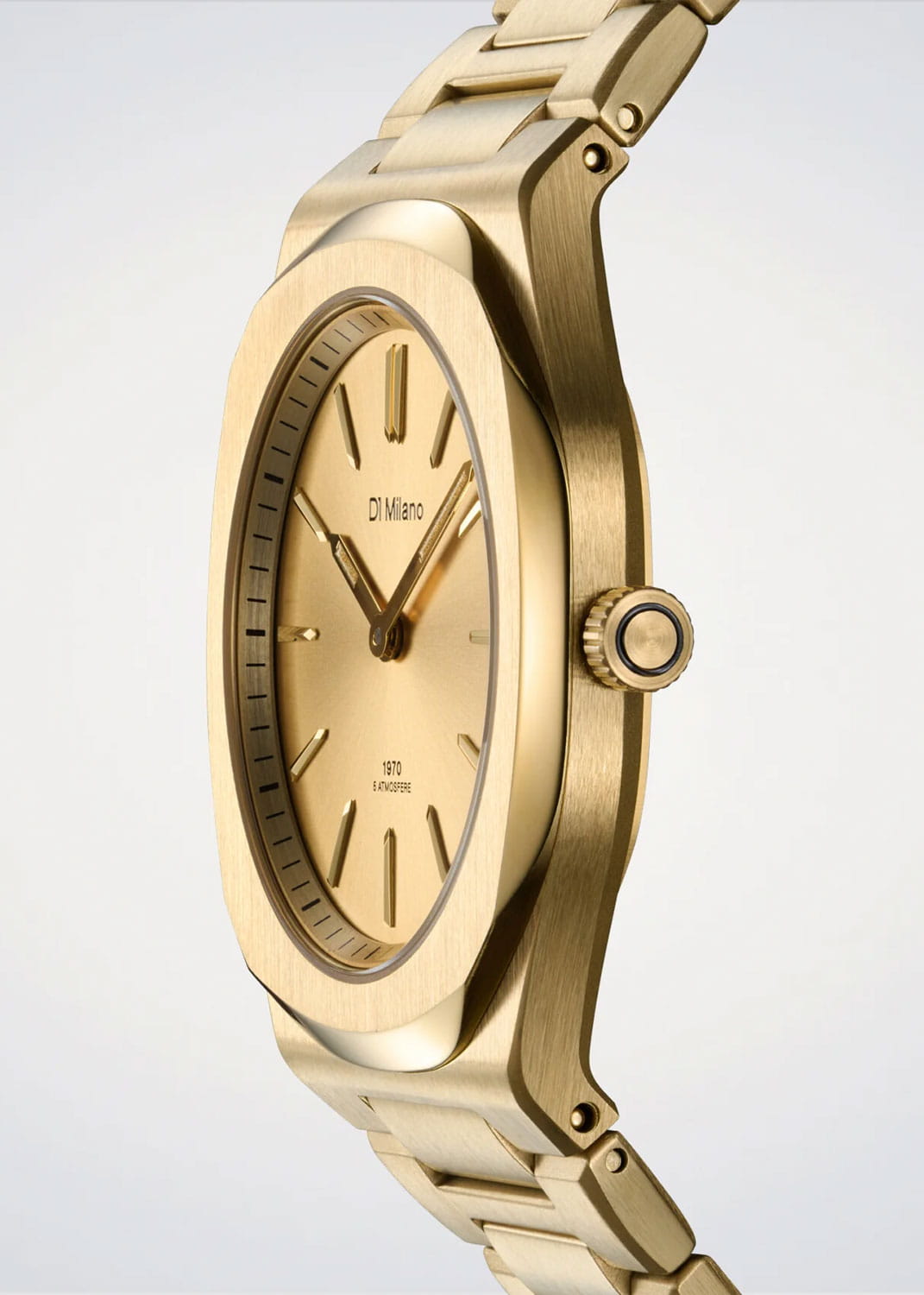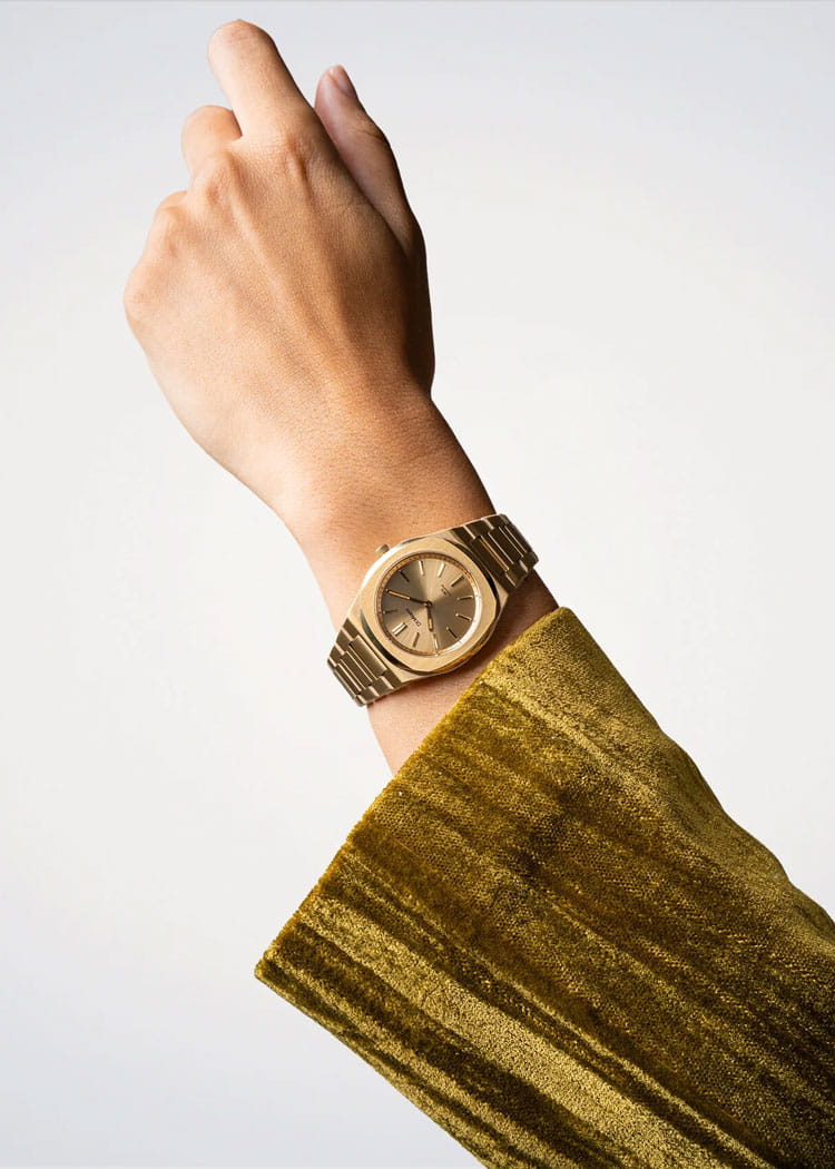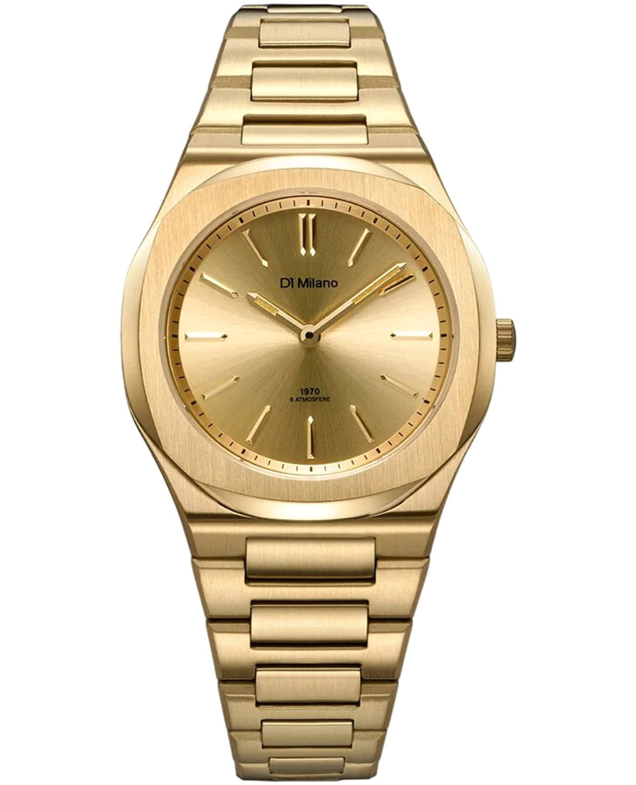 Женские кварцевые часы D1 Milano Ultra Thin UHBL02 — это стильное сочетание элегантности и современного дизайна. Изящный ультратонкий корпус выполнен из нержавеющей стали с PVD-покрытиемPVDУльтратонкое покрытие наносится в технике вакуумного напыления, сочетает в себе нитрид титана особой прочности со слоем золота или оксида хрома. Несёт в себе декоративную или защитную функцию. золотистого цвета, диаметром 34 мм, что придаст образу элегантности и надежности. Изысканный циферблат с метками в виде штрихов придает модели особый блеск. Циферблат защищен сапфировым стекломСапфировое стеклоПрочный и надёжный материал из кристалла сапфира синтетического происхождения, характеризующийся особой твёрдостью и устойчивостью к царапинам и повреждениям. с антибликовым покрытиемАнтибликовое покрытиеСлой оксида металла в 0,13-0,3 микрон, благодаря которому стекло часов не бликует и не отражает свет. Антибликовое покрытие уменьшает отражение света в 10 раз, обеспечивая отличную читаемость показателей циферблата., обеспечивающий устойчивость к царапинам. Стрелки с люминесцентным покрытиемЛюминесцентное покрытиеПозволяет считывать показания времени в темноте. Производители наносят на стрелки, часовые индексы, безель или поверхность циферблата светонакопительный состав, дающий холодное свечение.. Часы оснащены надежным кварцевым механизмом. Стальной браслет с PVD-покрытиемPVDУльтратонкое покрытие наносится в технике вакуумного напыления, сочетает в себе нитрид титана особой прочности со слоем золота или оксида хрома. Несёт в себе декоративную или защитную функцию. на застёжке-бабочке с кнопкамиЗастёжка "бабочка"Такой вид застёжки дополняется предохранителями, помогающими избежать случайного раскрытия браслета. Обладают изящным исполнением. , гарантирует комфортное и безопасное ношение. Класс водозащиты: 50 метров позволит защитить корпус от случайных брызг или капель дождя. Отличный выбор для тех, кто ценит утонченность и качество.