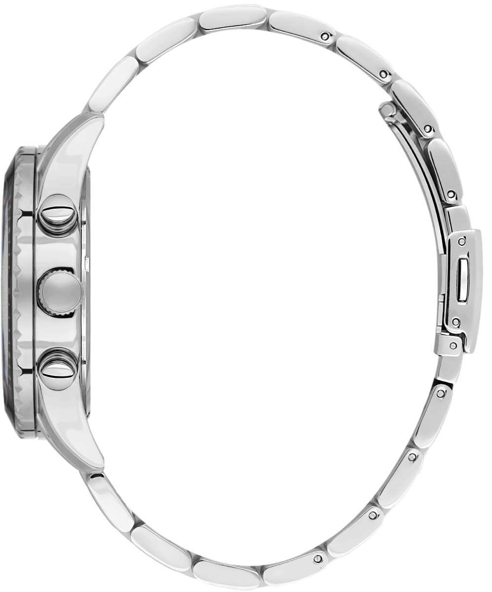 Мужские кварцевые часы Daniel Klein — это функциональный аксессуар, отражающий уверенность и чувство стиля. Корпус диаметром 44 мм выполнен из нержавеющей стали. БезельБезельВнешний ободок, закрепляющий стекло. В спортивных часах так называется поворотное кольцо с делениями на циферблате, выполняет роль таймера – замеряет отрезки времени на шкале. Неподвижный безель – элемент декора. Однонаправленно вращающийся безель на дайверских часах позволяет фиксировать моменты погружения и выныривания на поверхность. с IP-покрытиемIP-покрытиеМетод ионного напыления. Демонстрирует повышенную устойчивость к истиранию, окислению и химическим веществам. Под воздействием высокого давления и температуры около 1500°C молекулы металла надёжно соединяются с частицами корпуса часов.. Циферблат синего цвета выполнен по технологии Sunray («солнечные лучи») и оформлен точками, штрихами и стрелками. Присутствуют индикаторы 24-часового формата времени и второго часового пояса (GMTВторой часовой поясФункция, позволяющая отображать время двух часовых поясов одновременно.). Окошко даты расположено между 4 и 5 часами. Стрелки и метки с люминесцентным покрытиемЛюминесцентное покрытиеПозволяет считывать показания времени в темноте. Производители наносят на стрелки, часовые индексы, безель или поверхность циферблата светонакопительный состав, дающий холодное свечение., обеспечивающим хорошую читаемость в темноте. Циферблат защищён минеральным стекломМинеральное стеклоМинеральное стекло представляет собой искусственно выращенный минерал кварца. Такое стекло отличается особой устойчивостью к повреждениям и царапинам. Уступает по некоторым качествам сапфировому стеклу.. Часы оснащены стальным браслетом на раскладной застёжкеРаскладная застёжкаТакой тип застёжки используется только на браслетах из металла. Она никогда не раскрывается полностью, происходит разделение на 2 и более частей. Раскладывающая застёжка снизит вероятность потери часов к минимуму.. Водонепроницаемость 50 м позволяет использовать часы в повседневных условиях. Идеальный выбор для тех, кто ценит турецкое качество и универсальный дизайн.