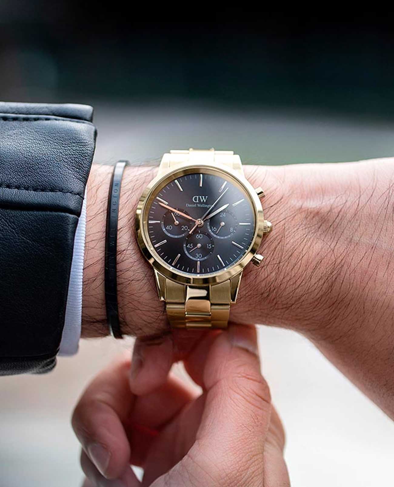 Мужские наручные часы-хронографХронографФункция позволяет измерять отрезки времени с особой точностью: часы, минуты, секунды. Верным признаком хронографа является наличие на циферблате 3 дополнительных окошек-счётчиков. с минеральным стеклом Минеральное стеклоМинеральное стекло представляет собой искусственно выращенный минерал кварца. Такое стекло отличается особой устойчивостью к повреждениям и царапинам. Уступает по некоторым качествам сапфировому стеклу. Daniel Wellington Daniel Wellington Iconic Link Arctic DW00100641, кварцевый механизм с высокой точностью. Корпус часов изготовлен из стали с PVD-покрытиемPVDУльтратонкое покрытие наносится в технике вакуумного напыления, сочетает в себе нитрид титана особой прочности со слоем золота или оксида хрома. Несёт в себе декоративную или защитную функцию.. Циферблат украшен фирменным логотипом Daniel Wellington. Накладные метки в виде штрихов. Рифленая заводная головка. Класс водозащиты: 50 метров, позволит защитить корпус от случайных брызг или капель дождя. Стальной браслет с PVD-покрытиемPVDУльтратонкое покрытие наносится в технике вакуумного напыления, сочетает в себе нитрид титана особой прочности со слоем золота или оксида хрома. Несёт в себе декоративную или защитную функцию. на застёжке-бабочке с кнопкамиЗастёжка "бабочка"Такой вид застёжки дополняется предохранителями, помогающими избежать случайного раскрытия браслета. Обладают изящным исполнением. .